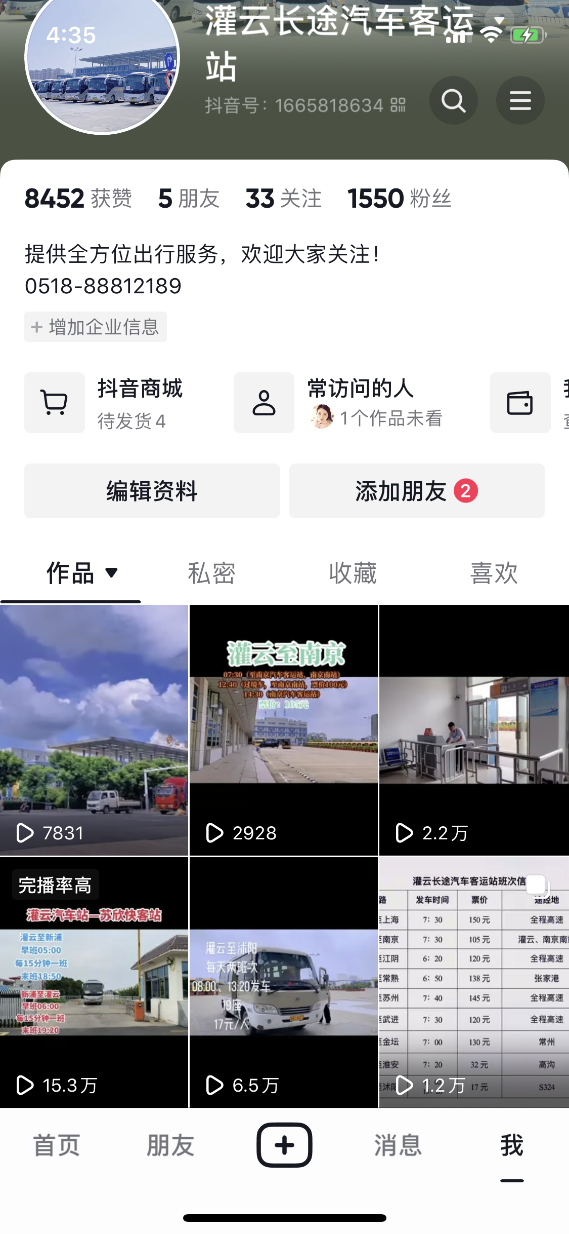 7月1日,連汽灌云長(zhǎng)途汽車客運(yùn)站抖音號(hào)正式開通。開通以來,連汽灌云長(zhǎng)途汽車客運(yùn)站抖音號(hào)粉絲持續(xù)增長(zhǎng),粉絲量現(xiàn)已突破1550人,雖然這個(gè)數(shù)字對(duì)于抖音平臺(tái)來說數(shù)量并不算多,但也是近一個(gè)月以來工作人員共同努力的成果。