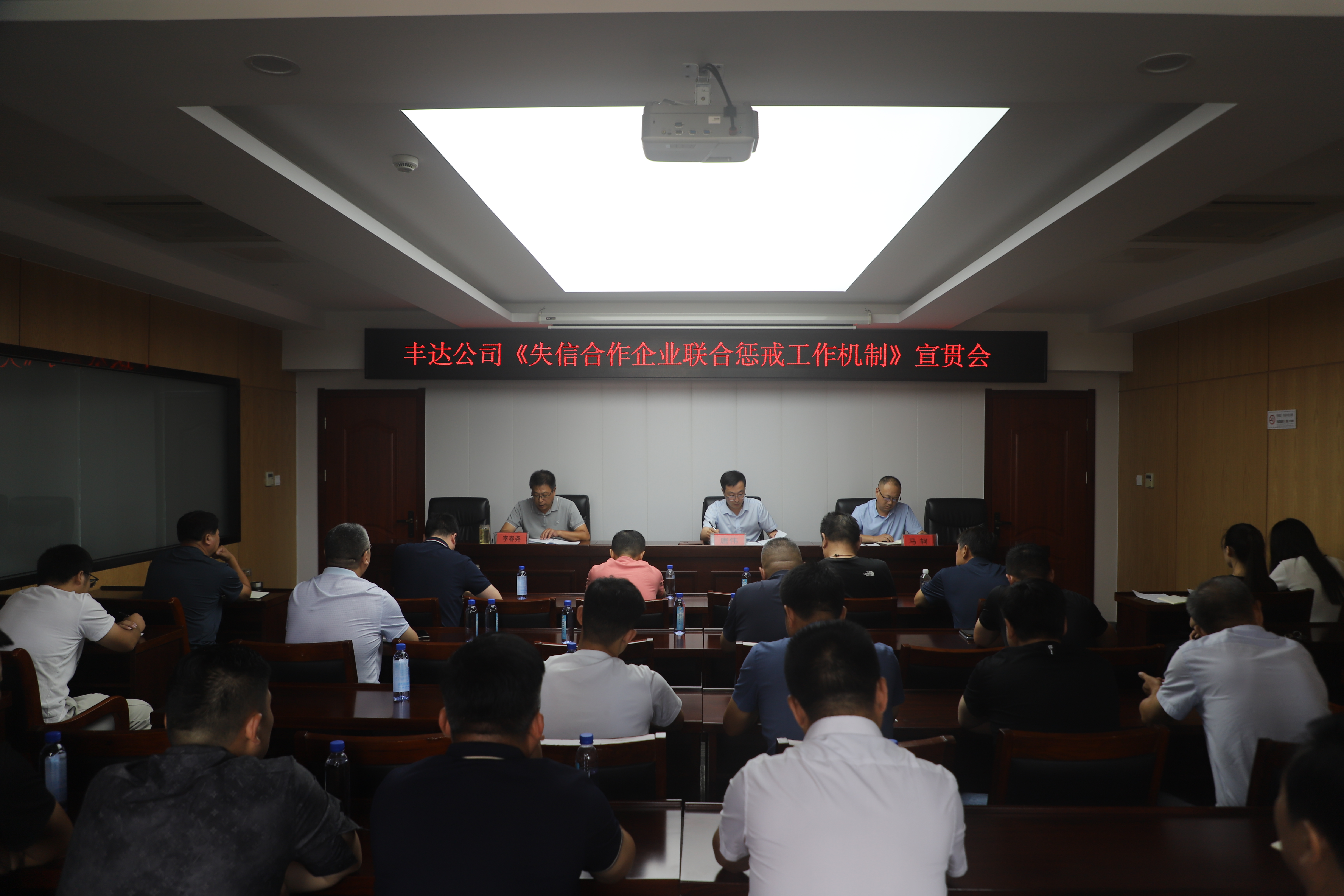 為了進一步強化廉潔風(fēng)險防控,有效防止“圍獵”與“被圍獵”風(fēng)險,塑優(yōu)營商環(huán)境,凈化政治生態(tài),8月4日上午,豐達公司組織召開《失信合作企業(yè)聯(lián)合懲戒工作機制(試行)》宣貫會。公司總經(jīng)理唐偉、工會主席李春堯、副總經(jīng)理馬軻出席會議并講話,豐達公司部門負(fù)責(zé)人、各分子公司經(jīng)理及公司合作單位負(fù)責(zé)人近三十人參加會議。