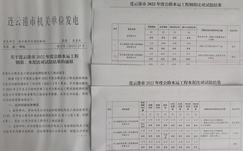 2023年2月至4月,市交通運輸局組織開展了全市公路水運試驗檢測機構(gòu)及全市范圍內(nèi)經(jīng)備案的工地試驗室鋼筋、水泥比對試驗,新絲路檢測公司認真準備,積極參加,最終取得所有參數(shù)均為“滿意”的成績。