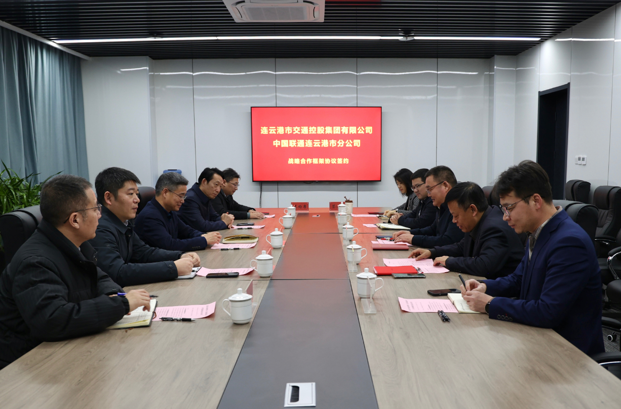 1月25日下午,市交通控股集團與中國聯(lián)通連云港分公司舉行簽約儀式。中國聯(lián)通連云港分公司黨委書記宋文豪,副總經(jīng)理張周華等;市交通控股集團黨委書記、董事長仲偉濤,副總經(jīng)理王中永等出席簽約儀式。
