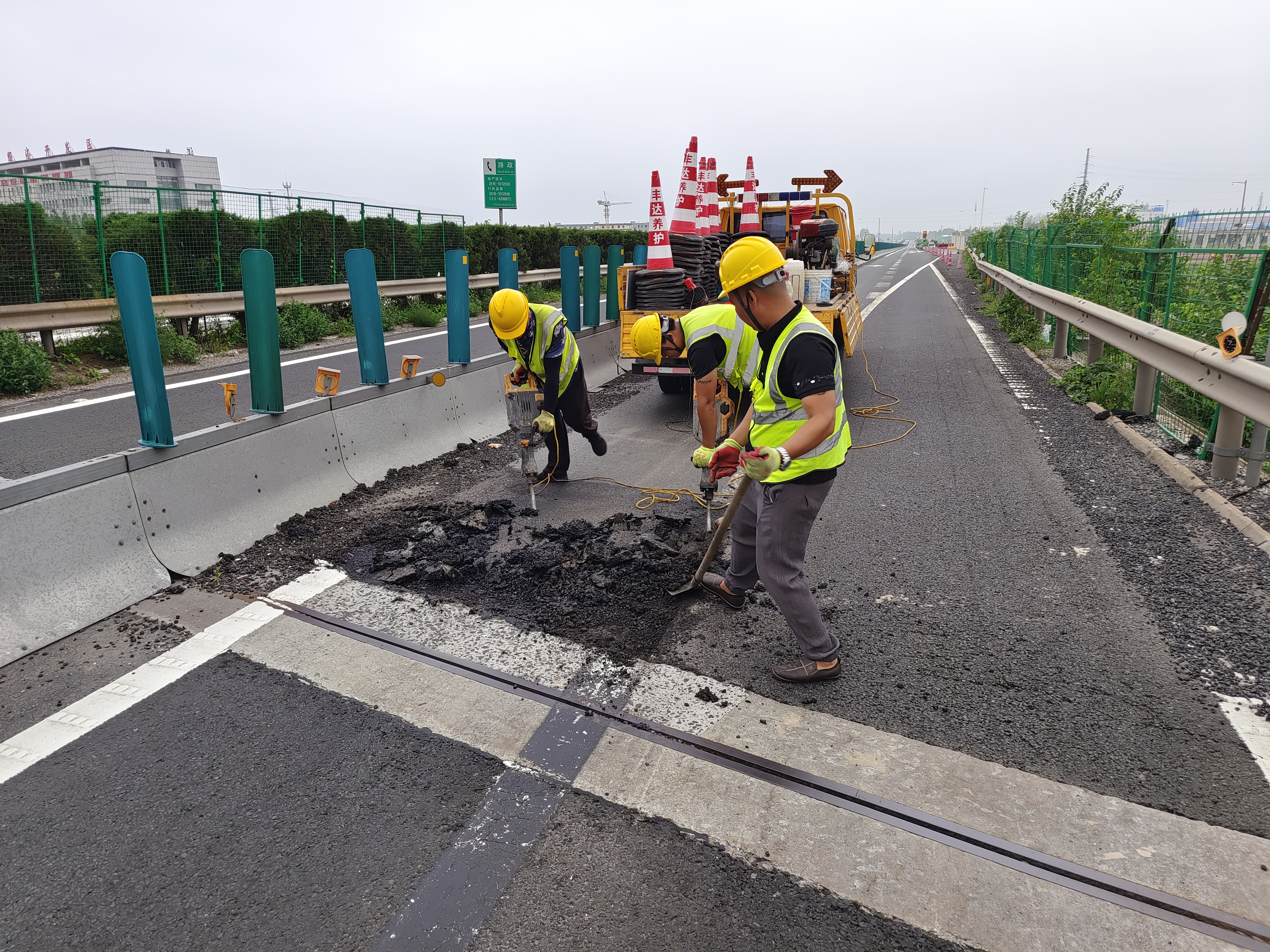 目前寧連高速連云港段因路面拓寬工程僅有一條車道可以正常通行。豐達公司寧連高速D標項目部經(jīng)實地調(diào)研,制定了切實可行的搶修方案,決定避開車輛高峰期,組織應急隊伍于7月19日凌晨3時14分開展公路應急搶修工作。因是借道通行主要路段,項目部采取收費站分流等措施在封閉路段三小時內(nèi)完成緊急搶修,同時與其他標段項目部展開聯(lián)合作業(yè)。至5時37分,路面坑塘熱補完畢,路段安全隱患已排除,道路已恢復暢通。此次路面應急搶修工作,項目部共出動施工人員9人,工程車輛3臺套。