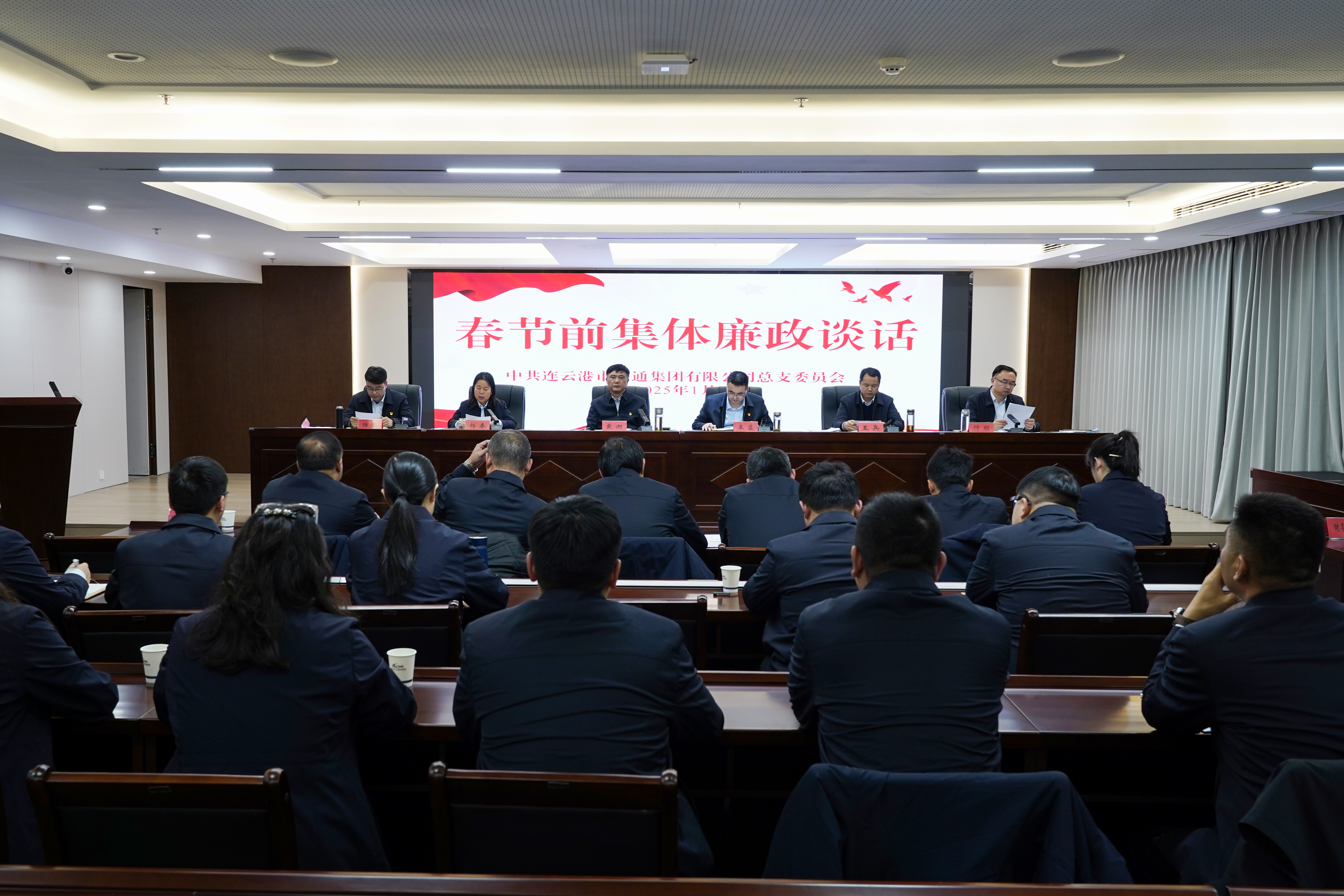 為切實(shí)強(qiáng)化正風(fēng)肅紀(jì),營(yíng)造風(fēng)清氣正節(jié)日氛圍,交通集團(tuán)開展春節(jié)前集體廉政談話,集團(tuán)領(lǐng)導(dǎo)班子成員,各公司、各部門負(fù)責(zé)人和黨員代表參加會(huì)議。集團(tuán)工會(huì)主席、紀(jì)檢委員楊春主持會(huì)議。