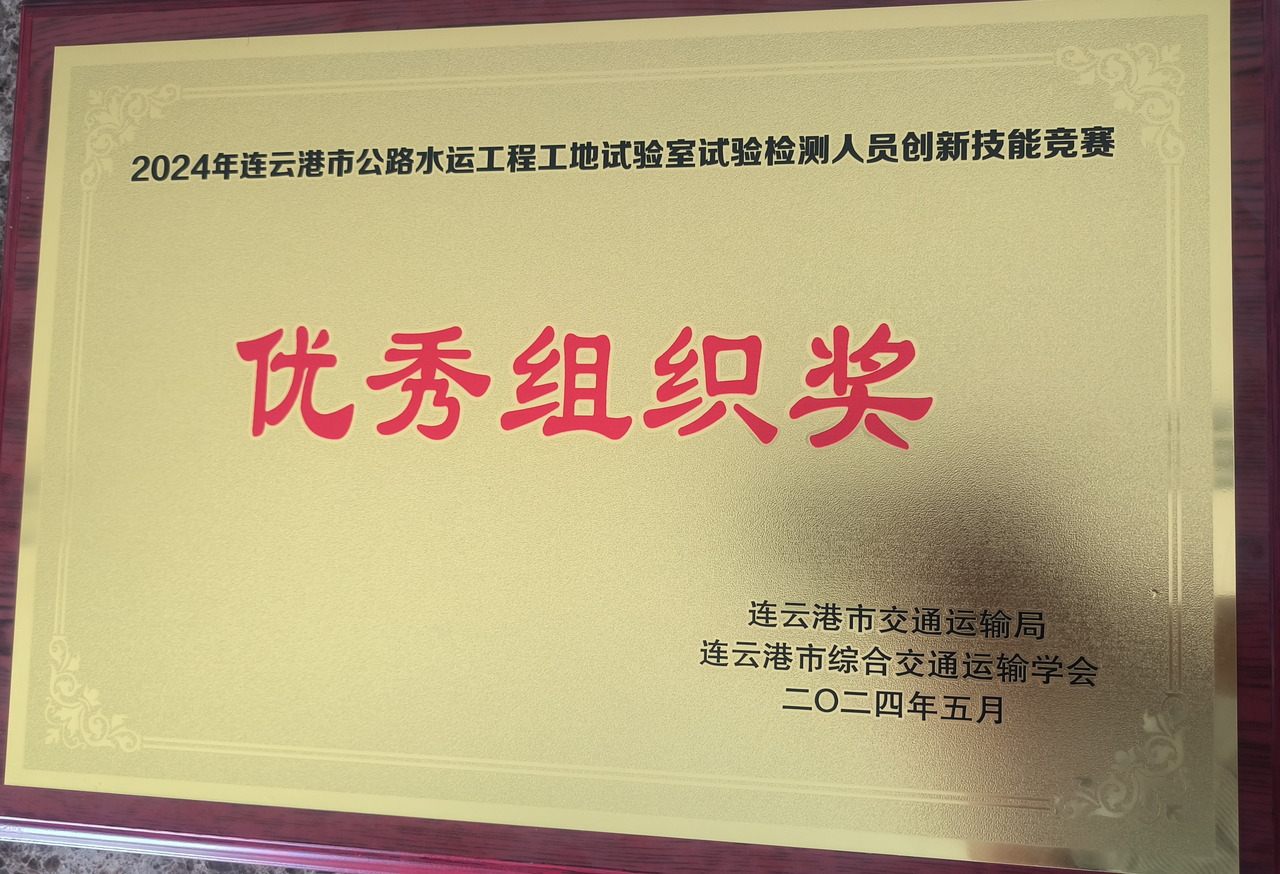 競賽期間通過團結合作,刻苦努力,江蘇海建新絲路分公司瀛洲南路改造及南延工程(一期)施工項目工地試驗室各位參賽隊員發(fā)揮出色,展現出高超的檢測本領,在本次技能競賽中獲得優(yōu)秀組織獎。