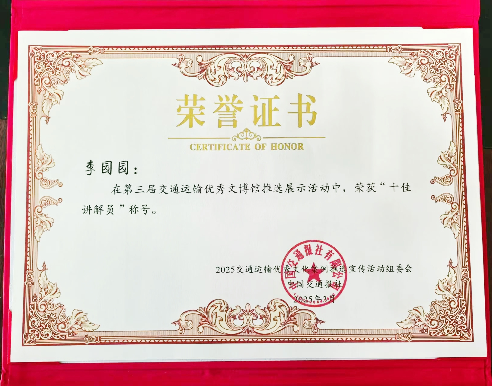 近日,在第三屆交通運(yùn)輸優(yōu)秀文博館集中展示活動(dòng)中,連汽新浦汽車(chē)總站“雷鋒車(chē)”事跡陳列館講解員李園園憑借出色表現(xiàn),榮獲“十佳講解員”稱號(hào)。