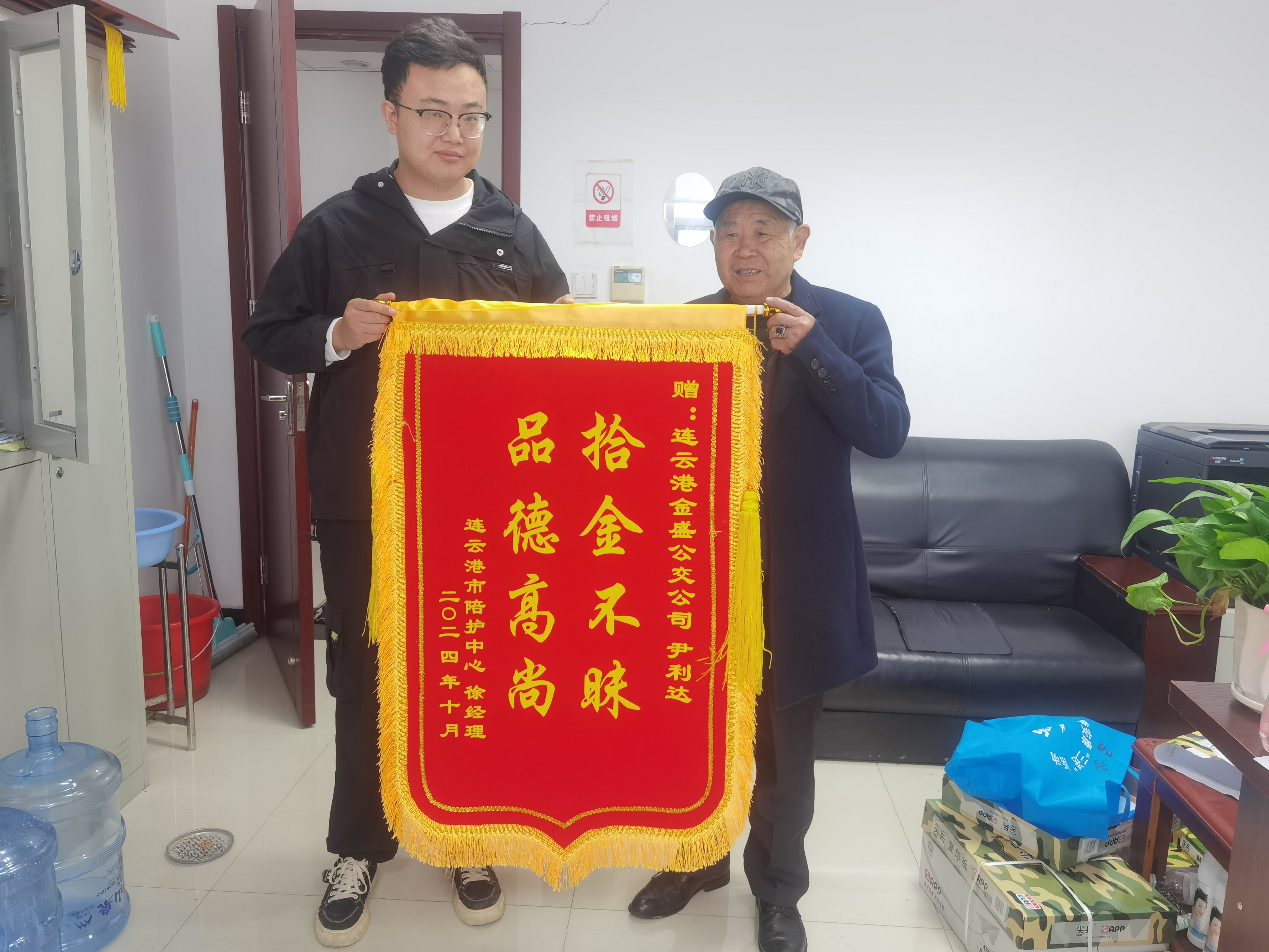為了表達(dá)對(duì)尹利達(dá)師傅拾金不昧高尚品德的感謝,徐經(jīng)理特意擇日來(lái)到金盛公交公司,送上了一面寫(xiě)有“拾金不昧, 品德高尚”的錦旗。尹利達(dá)師傅拾金不昧的行為,不僅展現(xiàn)了公交駕駛員良好的職業(yè)素養(yǎng),也為社會(huì)傳遞了一份正能量。