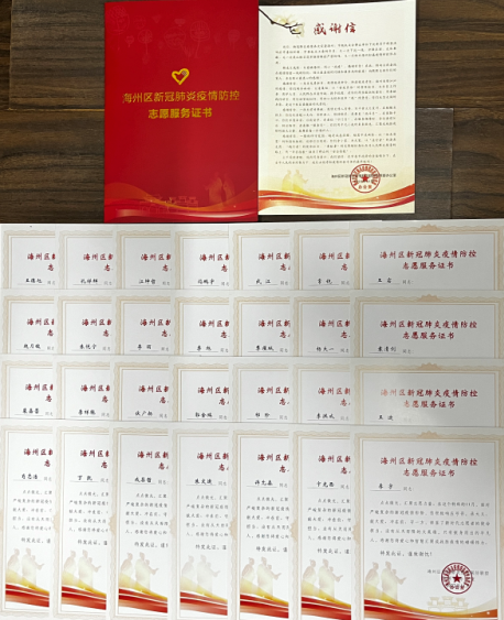 近日,物流集團28名志愿者收到來自海州區(qū)新冠肺炎疫情聯(lián)防聯(lián)控指揮部辦公室、幸福社區(qū)送來的志愿服務證書,對物流集團給予疫情防控志愿服務工作表示衷心感謝。