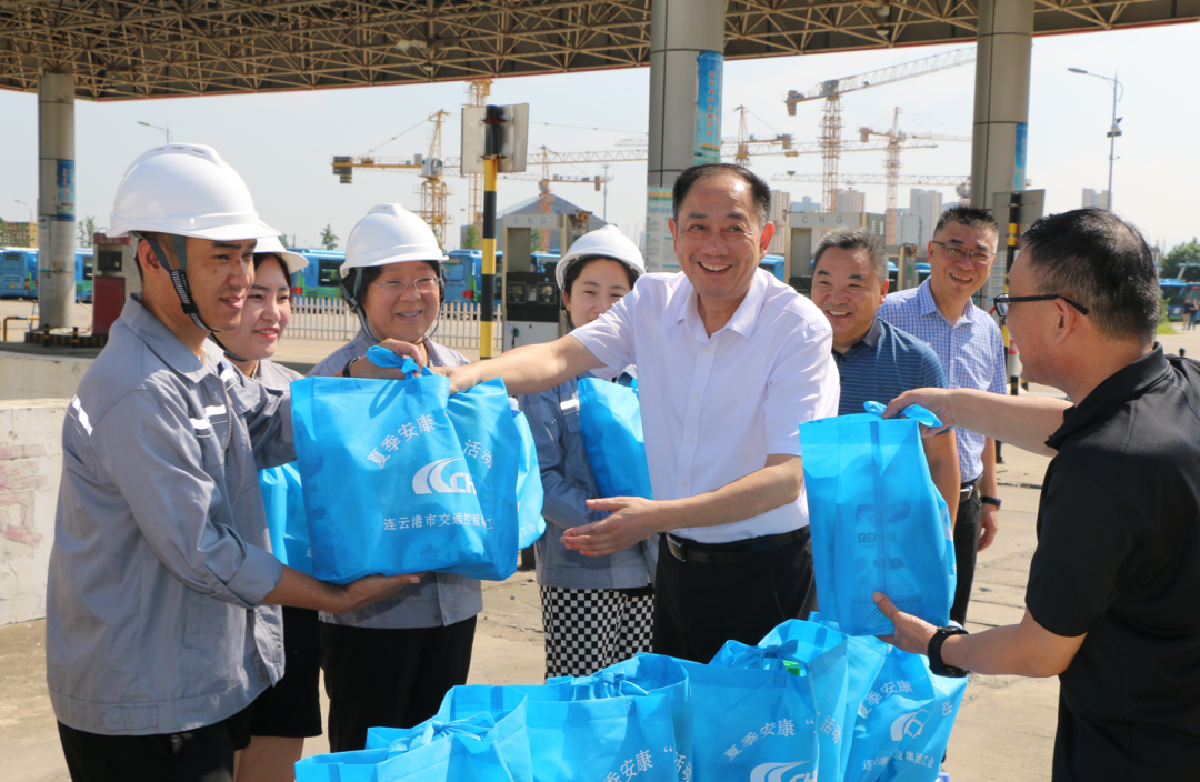 為切實(shí)做好夏季防暑降溫工作,保障職工安康權(quán)益,近日,集團(tuán)開(kāi)展“夏季送清涼”活動(dòng),集團(tuán)黨委書(shū)記、董事長(zhǎng)仲偉濤,集團(tuán)總經(jīng)理孫中華分別帶隊(duì)深入一線場(chǎng)站、班組、工地走訪慰問(wèn)在高溫天氣作業(yè)的一線職工,為他們送去洗漱套裝、礦泉水、人丹、風(fēng)油精等物品。集團(tuán)黨委副書(shū)記、工會(huì)主席陳金師陪同慰問(wèn)。