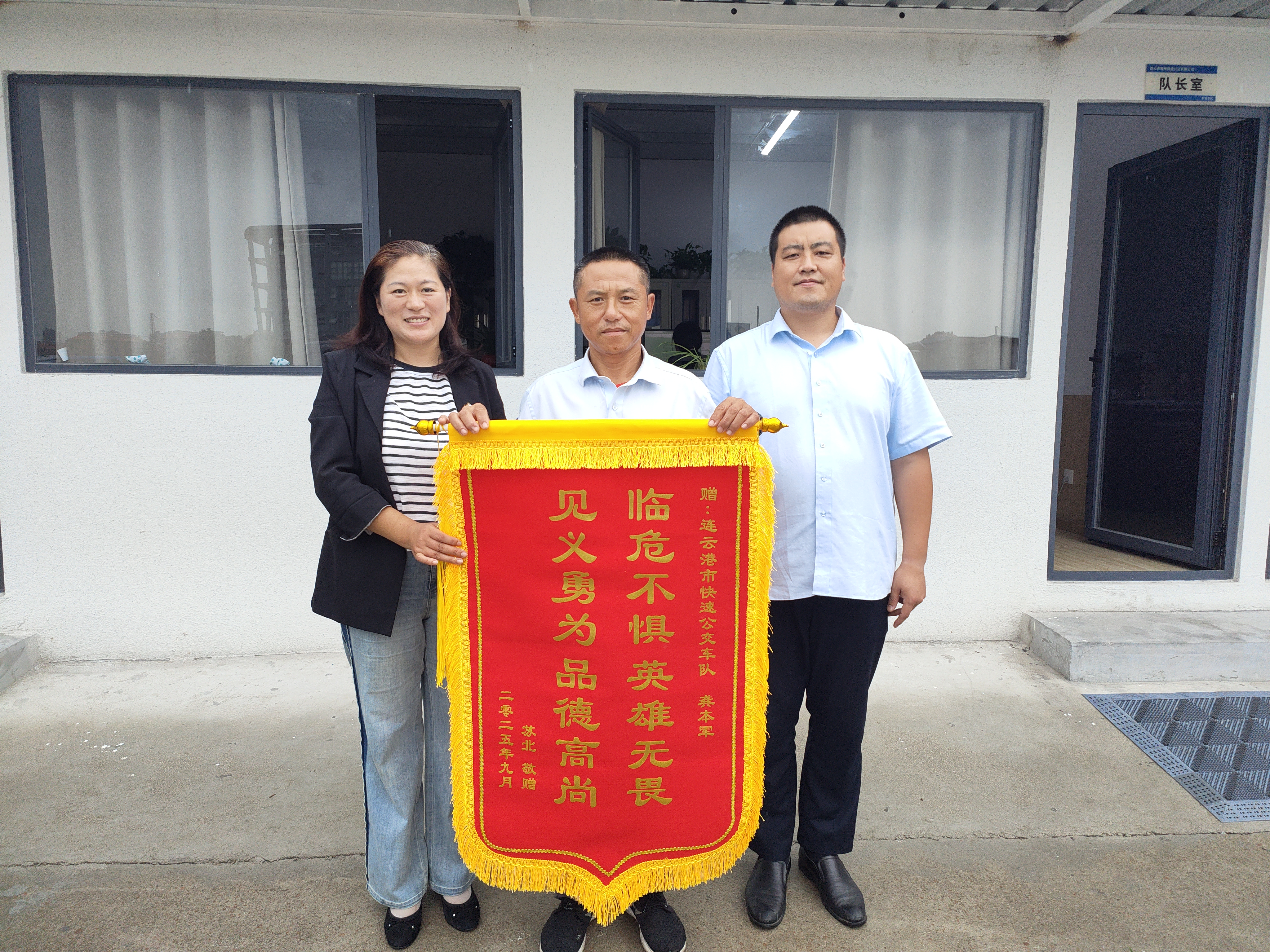 半個(gè)多月來,蘇女士身體逐漸恢復(fù),卻始終惦記著這位救命恩人。她多次在水庫邊等候,經(jīng)多方打聽,終于得知龔本軍是公交集團(tuán)快速公交的一名駕駛員。于是,她寫下感謝信、制作好錦旗,專程來到龔本軍的工作單位表達(dá)謝意。“真是遇見了好人,救了我一命!感謝公交公司培養(yǎng)出這么高素質(zhì)的駕駛員!”訴說過程中,蘇女士眼中含淚,激動地展開錦旗。錦旗上寫著“臨危不懼,英雄無畏,見義勇為,品德高尚”十六個(gè)字,以此致敬心中的“英雄”。蘇女士想當(dāng)面感謝龔本軍,得知龔本軍正在線路上運(yùn)營,還需要1個(gè)半小時(shí)才能到達(dá)?!皼]關(guān)系,我等他,一定要當(dāng)面謝謝龔師傅!”蘇女士堅(jiān)定地說。上午11時(shí)30分左右,龔本軍抵達(dá)東站停車場。當(dāng)蘇女士主動上前時(shí),龔本軍驚訝地望著她,片刻后才反應(yīng)過來,眼前之人正是自己當(dāng)初救下的落水者。面對蘇女士的感謝,他連連擺手,笑著說道:“沒事的,沒事的,只要人好好的就行,不用這么客氣?!?/span>
