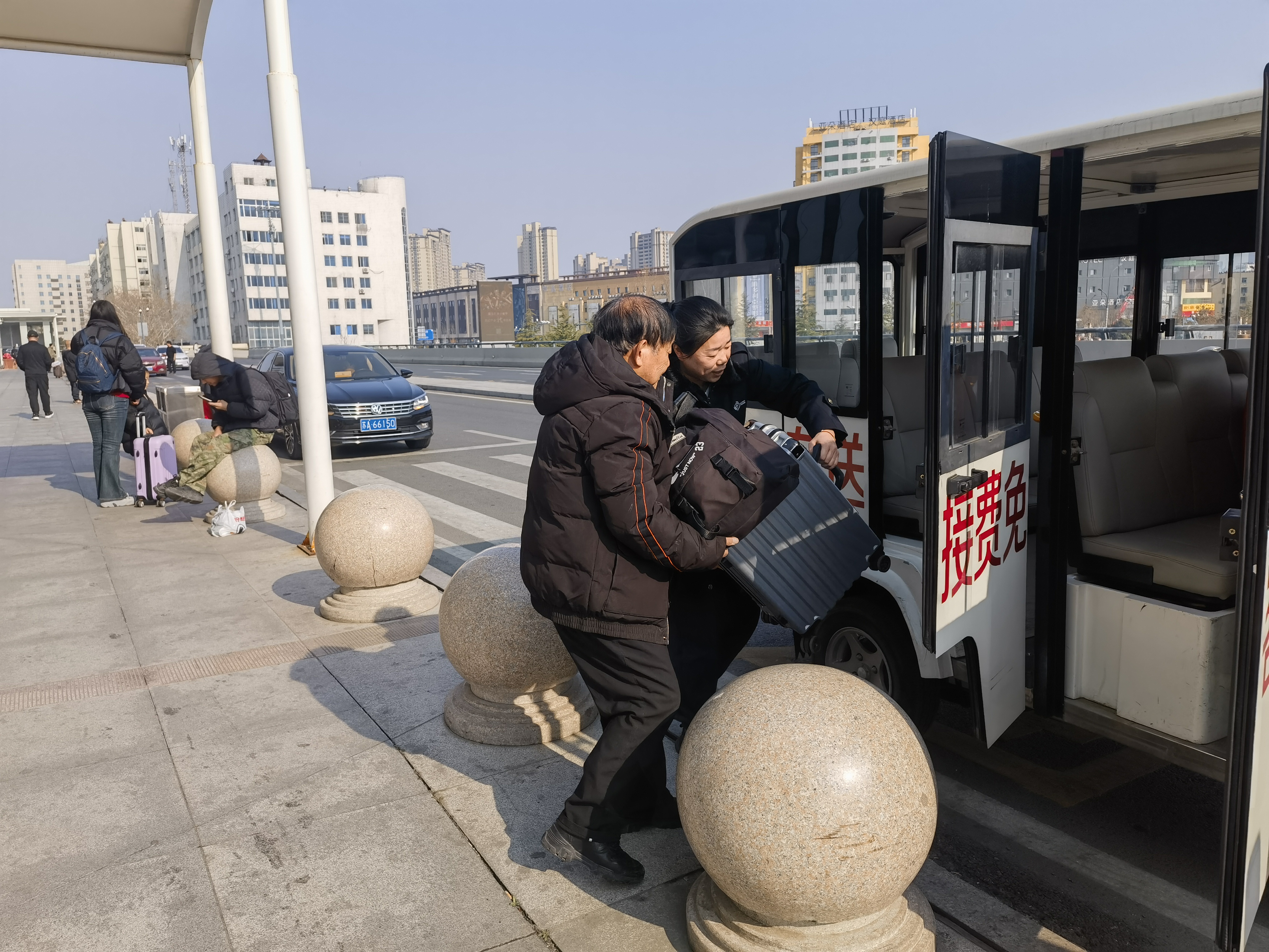 當(dāng)天,一位從高鐵出站的老大爺,帶著大件行李,行色匆匆又滿臉焦急。他要趕當(dāng)天前往響水的班車,可行李多、行動(dòng)不便,時(shí)間又緊迫,讓他陷入了困境?!袄卒h車”手呂紅路過時(shí),注意到了老大爺?shù)木狡?。她立刻走上前,詢問情況后,主動(dòng)提出用“雷鋒車”送老大爺去車站。