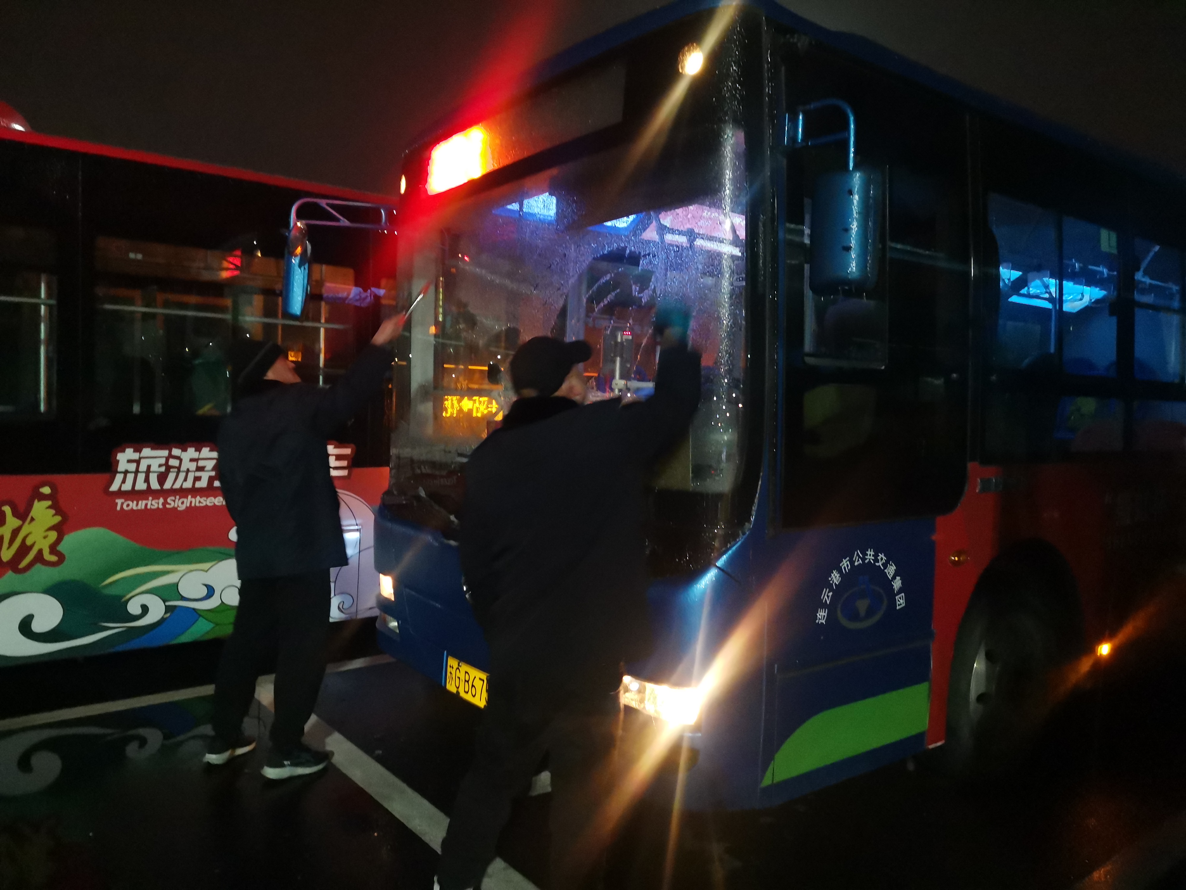 一是高度重視,靠前指揮,成立掃雪除冰臨時(shí)指揮部,集團(tuán)領(lǐng)導(dǎo)班子成員、安全、機(jī)務(wù)、運(yùn)營(yíng)部門負(fù)責(zé)人、各事業(yè)部管理人員下沉一線,現(xiàn)場(chǎng)調(diào)度、連夜奮戰(zhàn),時(shí)刻關(guān)注路況和天氣情況。二是嚴(yán)格落實(shí)24小時(shí)值班制度,各場(chǎng)站做好融雪劑、除雪鏟、掃雪工具等應(yīng)急物資儲(chǔ)備,駕駛員、站務(wù)員提前到崗,在發(fā)車前及時(shí)清理場(chǎng)站冰凍,為出行車輛打開(kāi)安全通道,全力保障出行安全。三是加強(qiáng)車輛燈光、輪胎、剎車等部位的檢查,要求駕駛員提前松手剎、輪胎后放墊木,儲(chǔ)氣筒放水,以防車輛結(jié)冰,特別關(guān)注防凍液的儲(chǔ)備情況,確保車輛性能良好,能夠正常運(yùn)行。四是加大線路巡查力度,調(diào)度人員利用車載監(jiān)控、微信群等平臺(tái),及時(shí)發(fā)送預(yù)警信息,加強(qiáng)安全交代,提示駕駛員“減速、控距、亮尾”,謹(jǐn)慎慢行,確保行車安全。五是做好車輛后勤保障,提前儲(chǔ)備車輛維修配件,修理人員提前到各場(chǎng)站,保障首班車按時(shí)發(fā)車,應(yīng)急保障人員及時(shí)上路搶修故障車輛,保障線路正常運(yùn)營(yíng)。