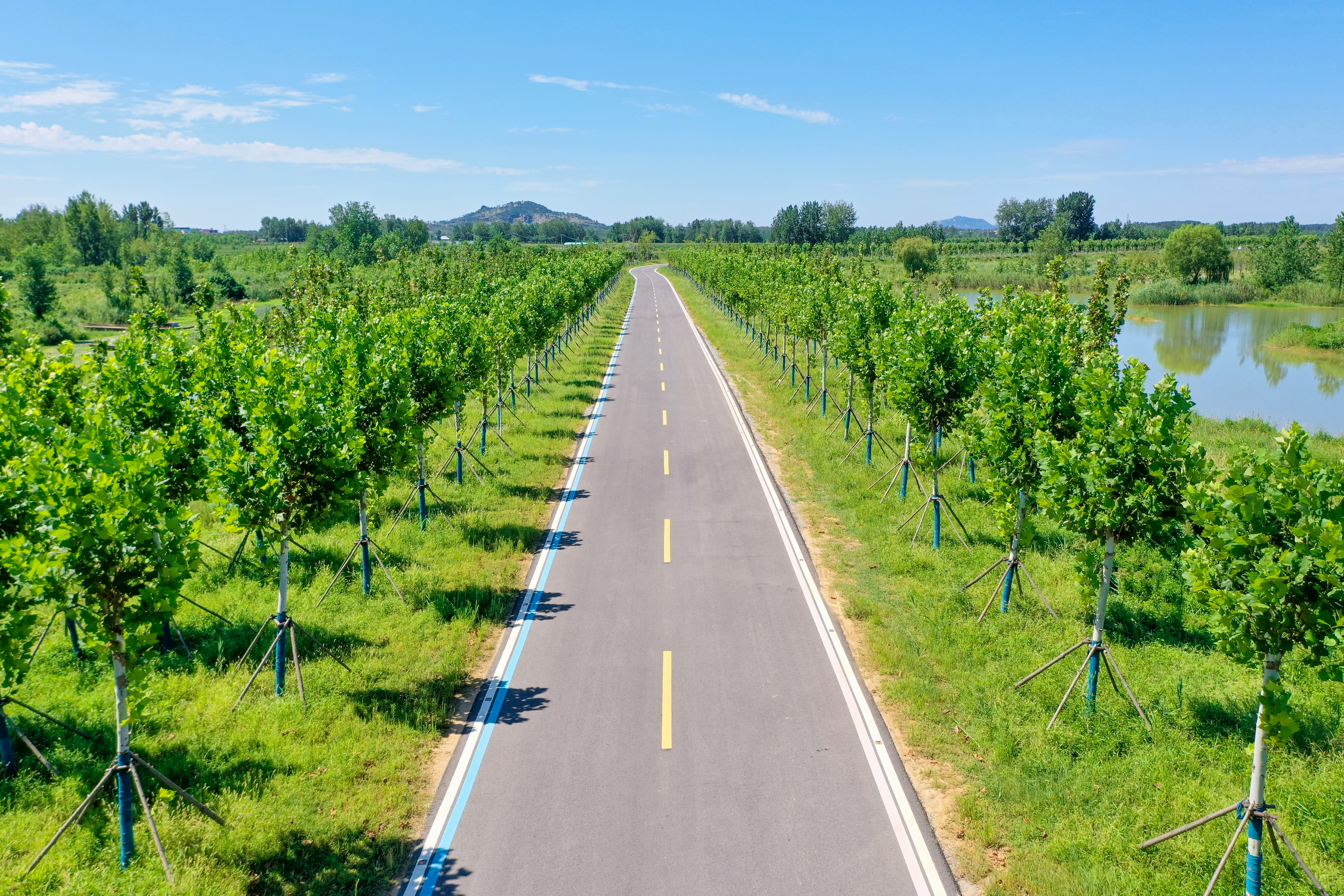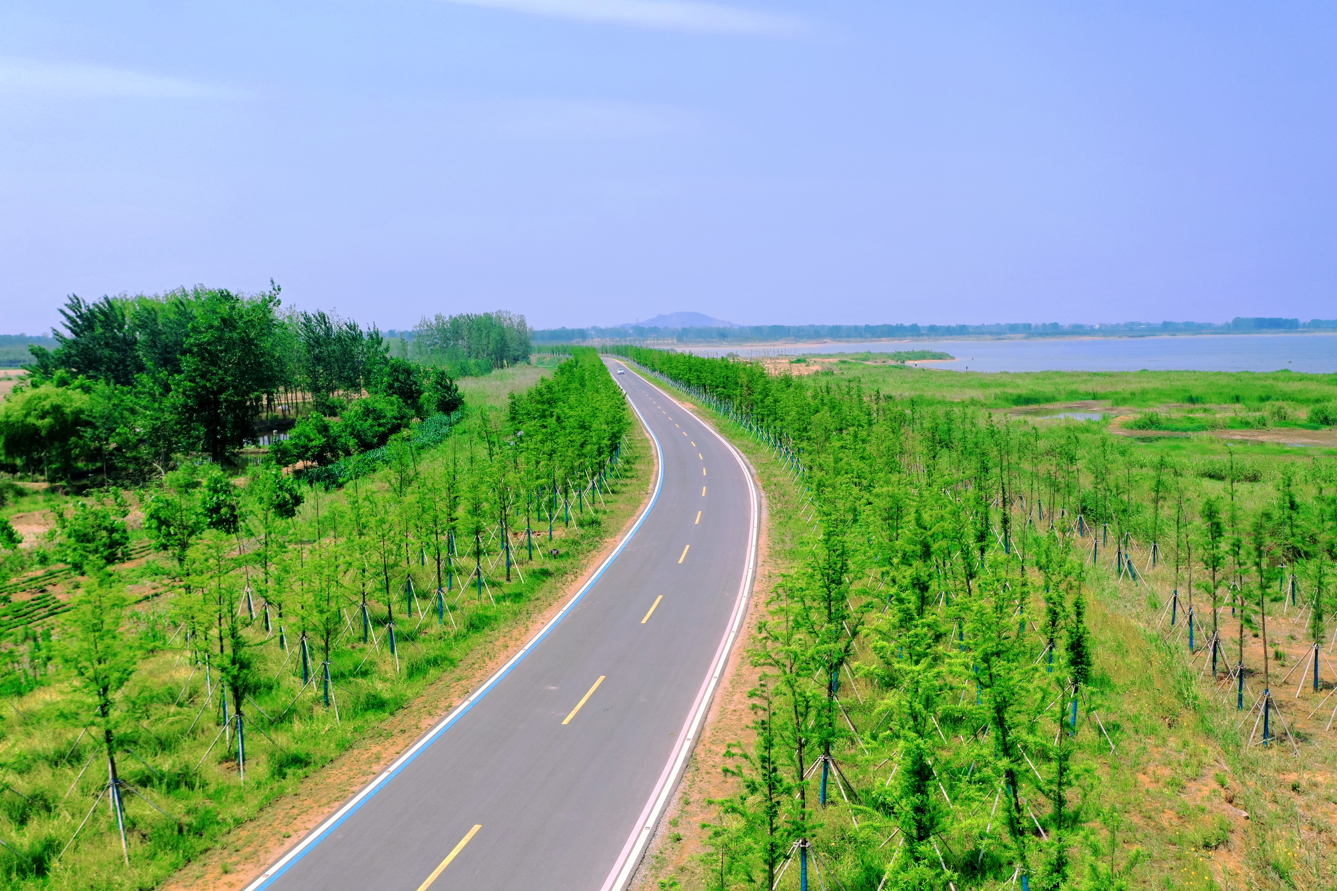 環(huán)湖路是石梁河水庫(kù)生態(tài)修復(fù)一期工程的重要組成部分,全線貫通的環(huán)湖路,成功串聯(lián)了沿線36個(gè)村莊,實(shí)現(xiàn)了村村通達(dá)、村村受益。這樣一條路,過(guò)硬的工程質(zhì)量、超高的施工效率、全面的管護(hù)措施只是其基本屬性,美麗才是它的最鮮明特色。集團(tuán)以環(huán)湖路沿線為基礎(chǔ)向外延伸,完成了380萬(wàn)平方米的生態(tài)復(fù)綠,沿路行駛,前有夜光道釘,上有鷗鷺翔集,旁有牛羊漫步,近有草木豐茂,遠(yuǎn)有粼波澄澈……兼具道路美、風(fēng)景美、生態(tài)美、多元美、發(fā)展美的環(huán)湖路,達(dá)成了“一步一景”、“路在景中”、“景即是路”的美好和諧氛圍,已成為短途游的“網(wǎng)紅”道路。