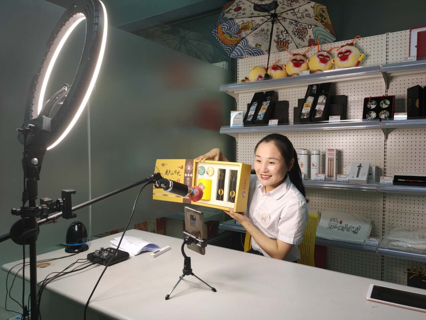 文旅小鋪陳列我市特色文化創(chuàng)意類產(chǎn)品、旅游紀(jì)念品、非遺伴手禮和地方土特產(chǎn)品,有如意金箍棒鋼筆、美猴王茶杯、芭蕉扇書簽;花果山的云霧茶、東海桃林的美酒,在您休憩候車之中,享受文化之美;在您旅行途中,為家人帶回一份心意。