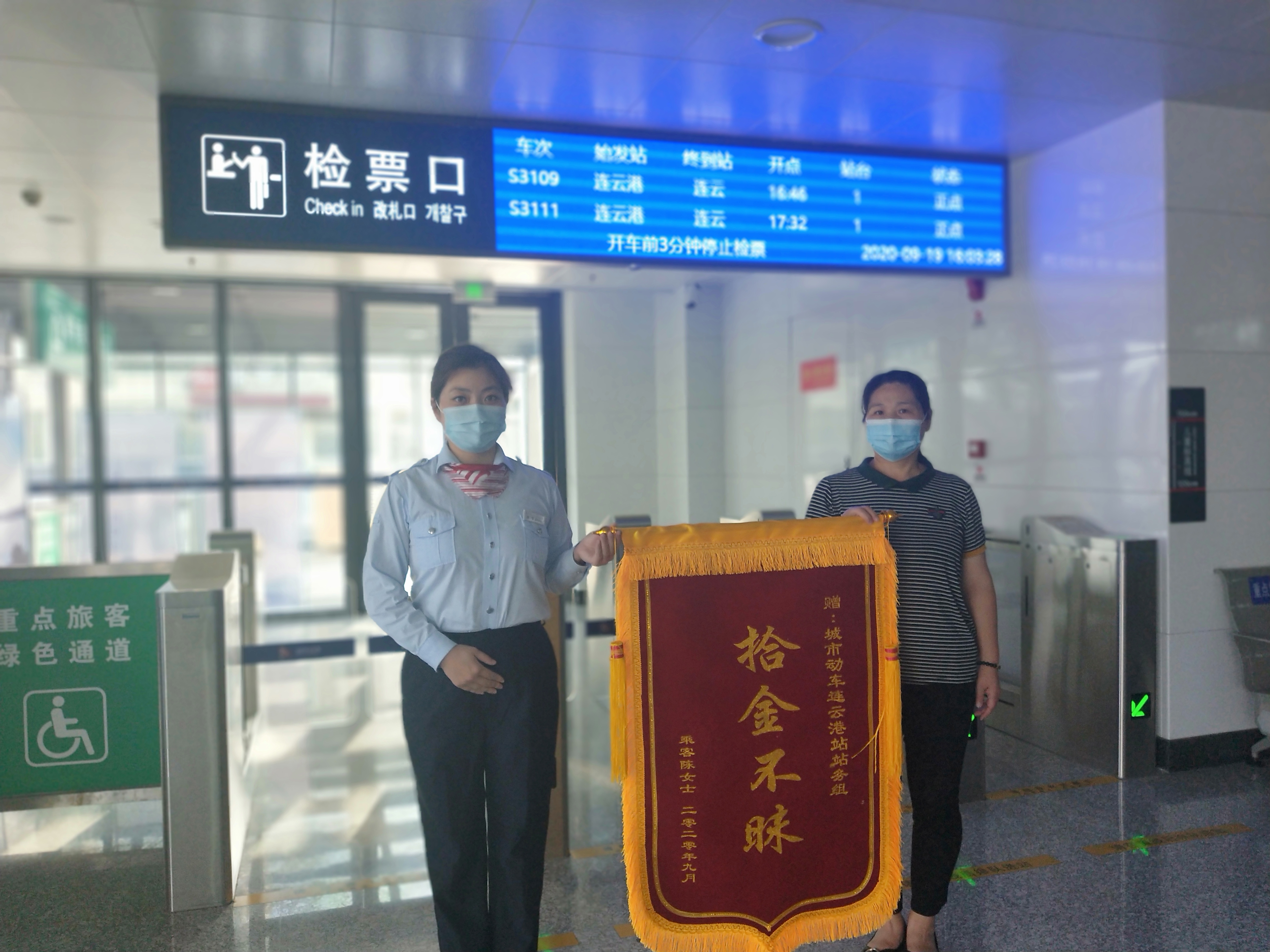 站務(wù)員韓雪了解情況后,這位旅客乘坐的車(chē)次已經(jīng)開(kāi)走,所以她連忙打電話到鹽坨站讓站務(wù)員上車(chē)尋找。站務(wù)員張送亞每一個(gè)角落都不放過(guò),終于在一個(gè)座位上找到了包。韓雪立刻將這個(gè)好消息告訴這位失主陳女士。陳女士當(dāng)時(shí)激動(dòng)不已。當(dāng)天下午,陳女士送來(lái)了錦旗表示感謝,激動(dòng)地握著韓雪的手說(shuō):“太感謝你們了,包里現(xiàn)金雖然不多,但是如果銀行卡和醫(yī)??▉G失,那可就麻煩了。你們城市動(dòng)車(chē)工作人員的工作態(tài)度真的讓我非常感動(dòng)?!?/span>