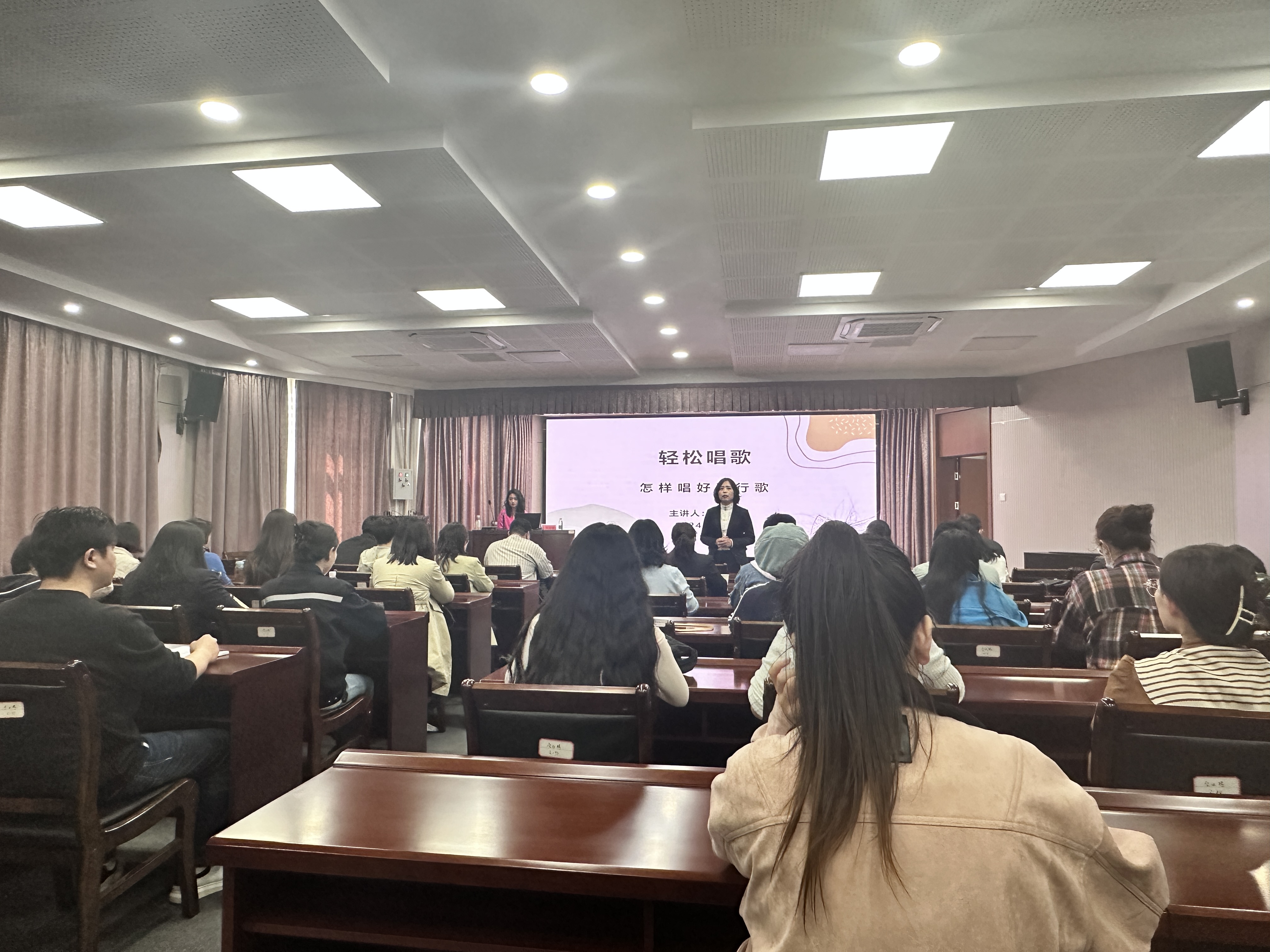 本期培訓(xùn),由市演藝集團著名歌手洪詩喻老師為大家培訓(xùn)。培訓(xùn)過程中,洪老師首先從氣息運用、聲音控制、發(fā)聲方式等方面,系統(tǒng)講解了流行音樂的演唱技巧。接著根據(jù)每一名學(xué)員特點,對學(xué)員們進行了面對面的聲樂訓(xùn)練。最后,洪老師示范了《像風(fēng)一樣自由》《如愿》等耳熟能詳?shù)母枨?,整個培訓(xùn)現(xiàn)場互動活躍,輕松愉快。
