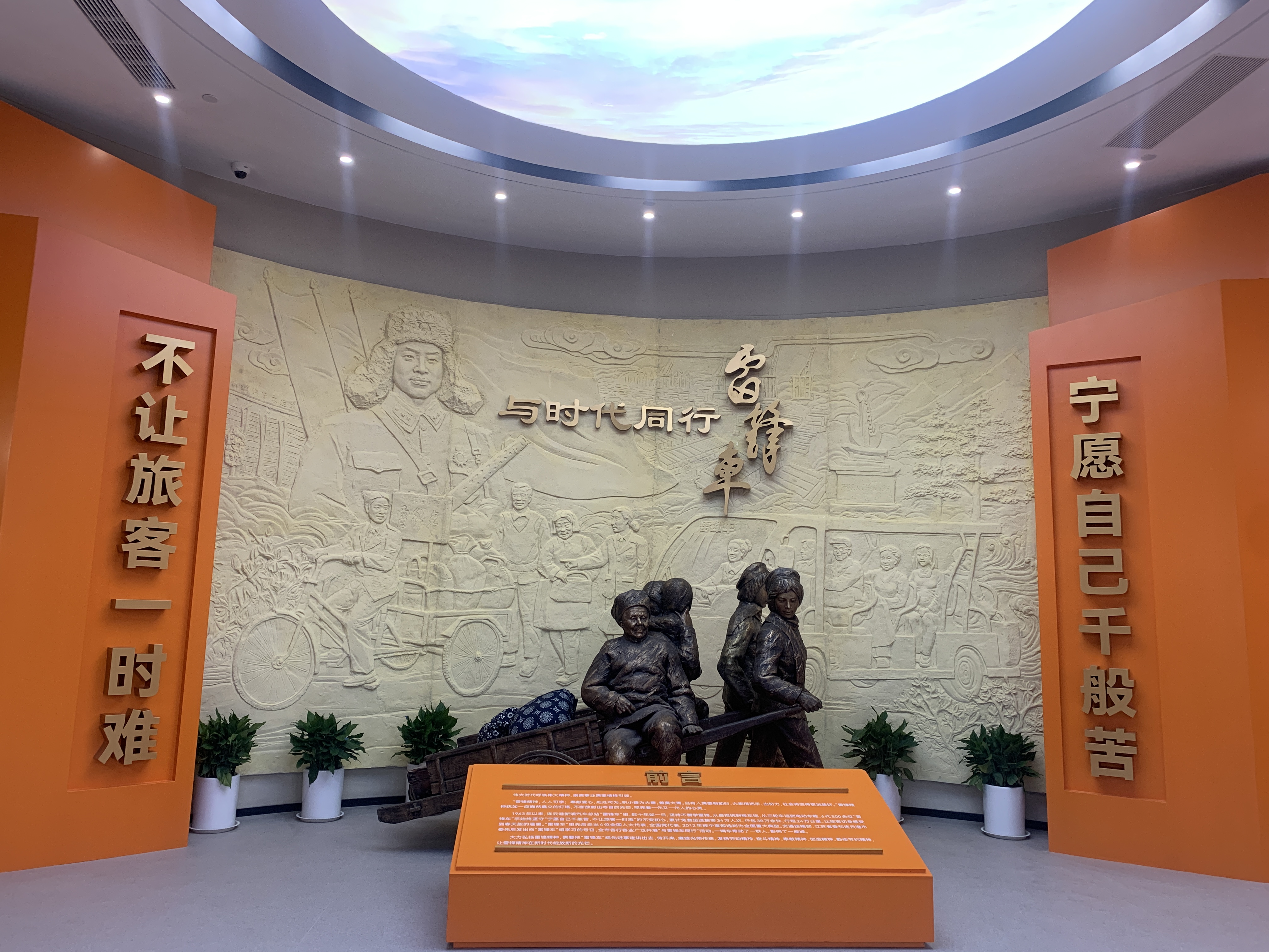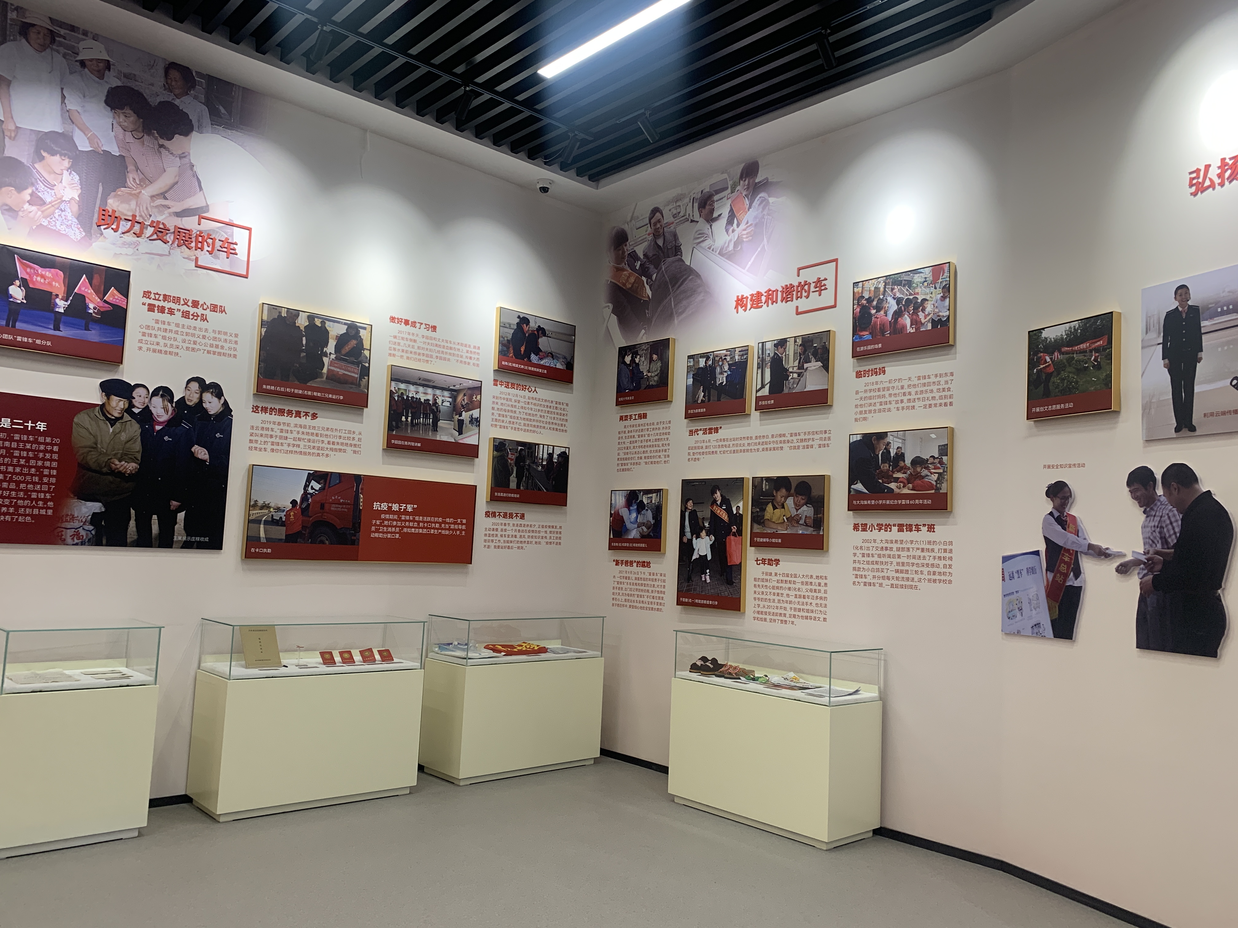“雷鋒車”事跡陳列館位于江蘇省連云港市新浦汽車總站客運站二層,面積由原來的300平米增至614平米,展覽線路長度約230米。整個展館分為四個部分:在學雷鋒大潮中誕生、在改革開放中發(fā)展、在新時代中奮進、在傳承弘揚中廣大。根據(jù)時代變遷中“雷鋒車”組的成長脈絡和感人故事,通過標志性圖片、數(shù)據(jù)圖標、音像視頻、實物文物和場景造型附以說明文字等多種方式,全方位立體展示“雷鋒車”組60年間全心全意為人民服務的先進事跡,讓參觀者擁有更加直觀的觀展體驗。