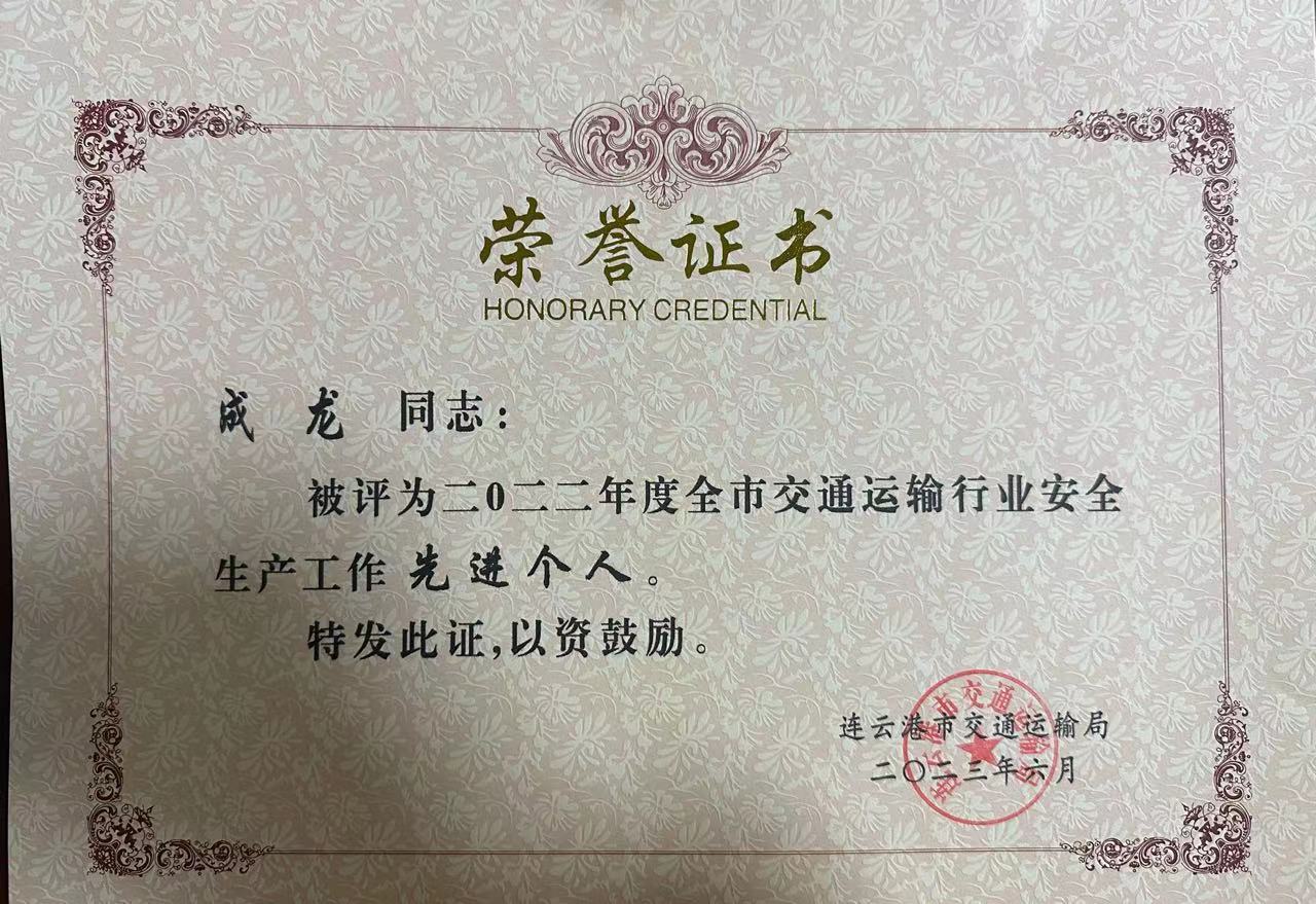 日前,《關于表彰2022年度全市交通運輸行業(yè)安全生產(chǎn)工作先進單位、先進集體和先進個人的通報》,連汽出租公司獲得2022年度全市交通運輸行業(yè)安全生產(chǎn)工作先進單位,公司支部書記成龍同志被評為2022年度全市交通運輸行業(yè)安全生產(chǎn)工作先進個人榮譽稱號。