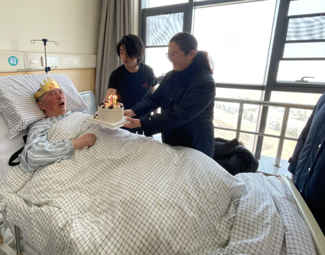 “祝你生日快樂,祝你生日快樂......”近日,市一院神經(jīng)科的一間病房?jī)?nèi)響起了美妙的歌聲,當(dāng)天恰逢特困職工李大周48歲生日,連云港海通公共交通有限公司工會(huì)主席祝春彥帶領(lǐng)小組成員們?yōu)樗e辦一場(chǎng)特殊的慶生儀式。李大周頭戴生日帽,家屬為他吹滅生日蠟燭。