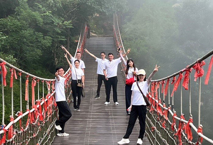 職工們奮力攀登山峰,互相鼓勵扶持,在挑戰(zhàn)中磨礪意志、增進情誼,體驗登頂喜悅并加深對生態(tài)理念的理解。