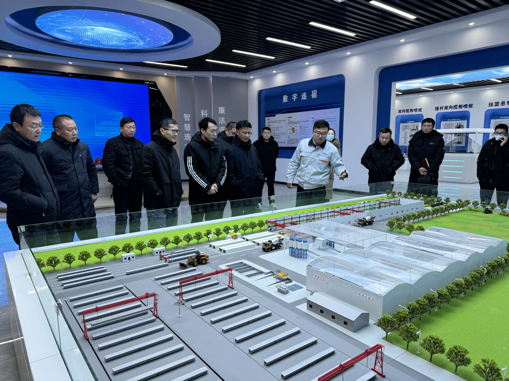 在隨后進(jìn)行的交流活動中,參觀人員來到南京交通工程有限公司連宿高速5標(biāo)項(xiàng)目部駐地,詳細(xì)了解了工地試驗(yàn)室的建設(shè)、施工現(xiàn)場管理、智慧工地技術(shù)的應(yīng)用,并進(jìn)行沉浸式安全VR體驗(yàn)、安全實(shí)操教學(xué)、信息化移動臺座和智能液壓樣板專項(xiàng)學(xué)習(xí)。
