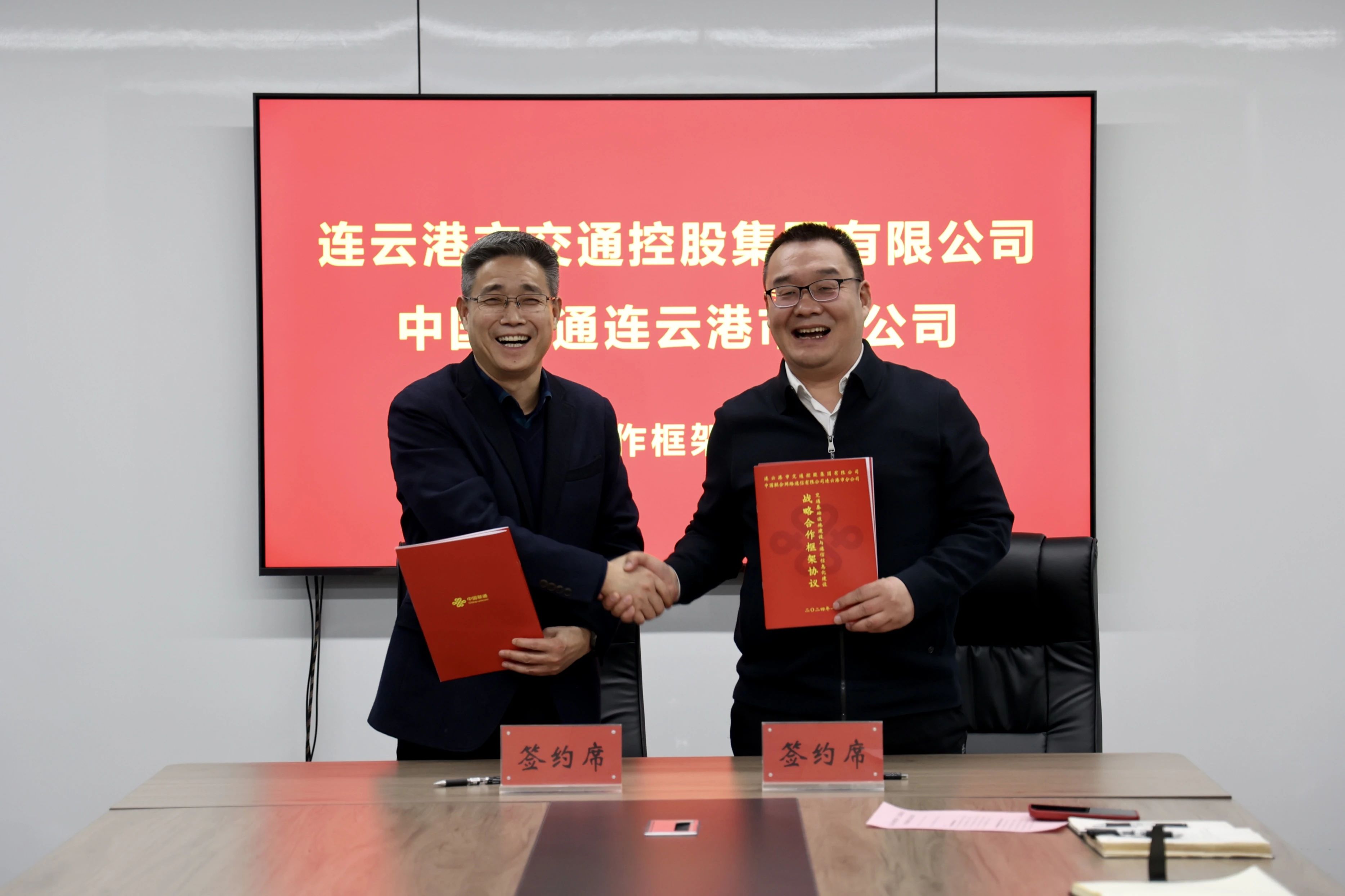 1月25日下午,市交通控股集團與中國聯(lián)通連云港分公司舉行簽約儀式。中國聯(lián)通連云港分公司黨委書記宋文豪,副總經(jīng)理張周華等;市交通控股集團黨委書記、董事長仲偉濤,副總經(jīng)理王中永等出席簽約儀式。