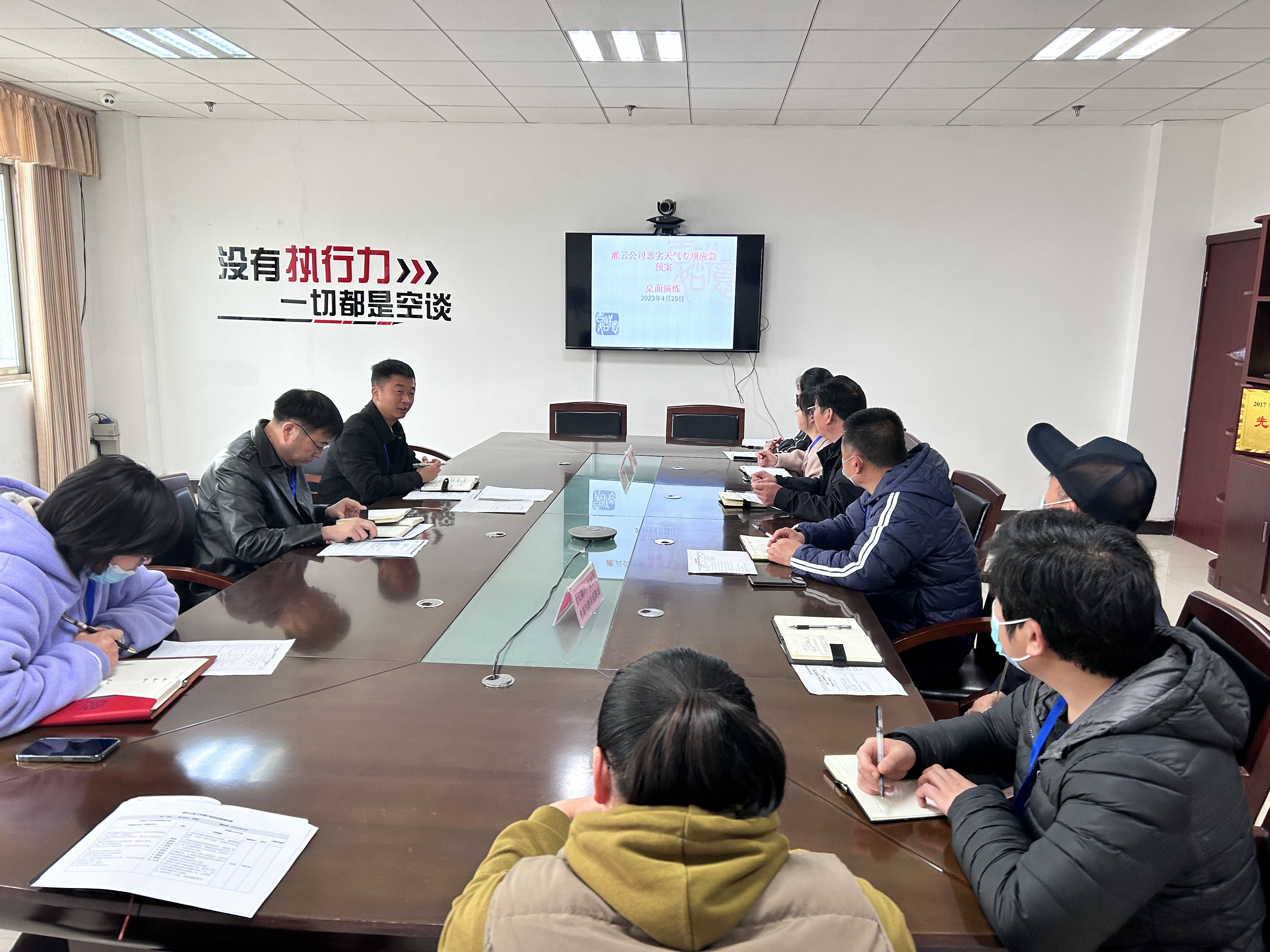 為了進一步提高灌云公司工作人員應(yīng)急處置能力,檢驗應(yīng)急預(yù)案的適宜性和可操作性,規(guī)范應(yīng)急處置工作流程,4月25日,連汽灌云公司組織部門負責人、應(yīng)急人員在三樓會議室開展惡劣天氣專項應(yīng)急預(yù)案桌面演練。