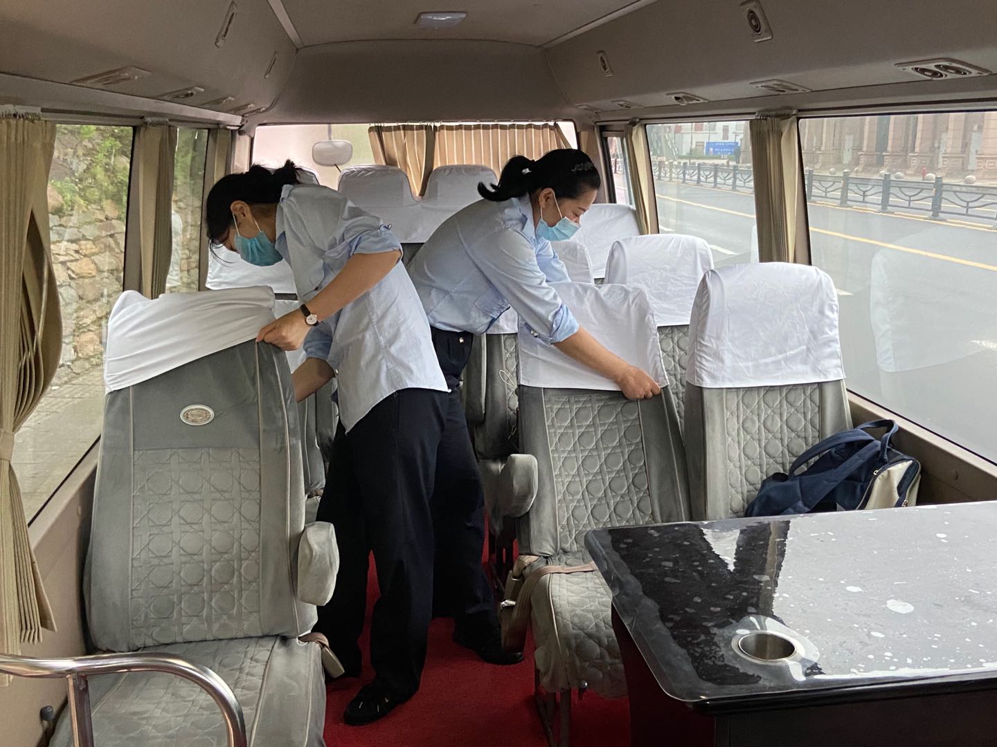 烈日似火,大地就像大蒸籠一樣,熱得使人喘不過(guò)氣來(lái)。炎炎烈日人人避之不及,城市動(dòng)車(chē)連云站的姑娘們卻毫不畏懼,她們利用自己休息的時(shí)間幫助城市動(dòng)車(chē)通勤車(chē)的曹師傅一起打掃車(chē)內(nèi)衛(wèi)生,清掃車(chē)內(nèi)地面,擦拭車(chē)窗玻璃,將車(chē)上座位套一個(gè)個(gè)取下,仔細(xì)清洗干凈后再一個(gè)個(gè)套上去。曹師傅感謝姑娘們的幫忙,姑娘們笑著說(shuō)“大家每日上班都要乘車(chē)近3個(gè)小時(shí),干凈衛(wèi)生的車(chē)內(nèi)環(huán)境,既能讓大家有一個(gè)舒適的乘車(chē)感受,又能讓大家每天都能有個(gè)好心情,大家以良好的精神狀態(tài)投入到一天的工作中去?!弊猿鞘袆?dòng)車(chē)開(kāi)通以來(lái),城市動(dòng)車(chē)的工作人員每日早上五點(diǎn)乘坐通勤車(chē)前往連云站,晚上等動(dòng)車(chē)結(jié)束后再乘坐通勤車(chē)返回海州,如果說(shuō)通勤車(chē)是工作人員臨時(shí)的家,每個(gè)座位就是大家的臨時(shí)床位,大家每日早出晚歸只能利用乘車(chē)這段時(shí)間給自己補(bǔ)補(bǔ)覺(jué)。
