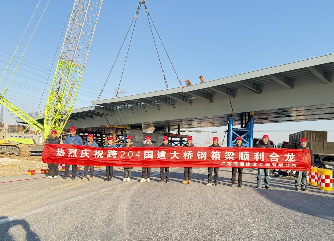 瀛洲南路改造及南延工程(一期)項目跨G204橋梁鋼箱梁吊裝順利合龍