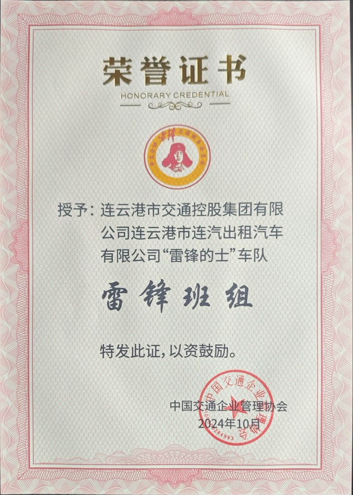 11月6日,從中國交通企業(yè)管理協(xié)會傳來喜訊,連云港市交通控股集團汽服公司出租汽車事業(yè)部“雷鋒的士”車隊喜獲“雷鋒班組”稱號,這一殊榮不僅是對“雷鋒的士”車隊長期以來堅持優(yōu)質(zhì)服務和無私奉獻精神的肯定,也是對整個出租汽車行業(yè)樹立新風尚、展現(xiàn)新形象的有力鼓舞。