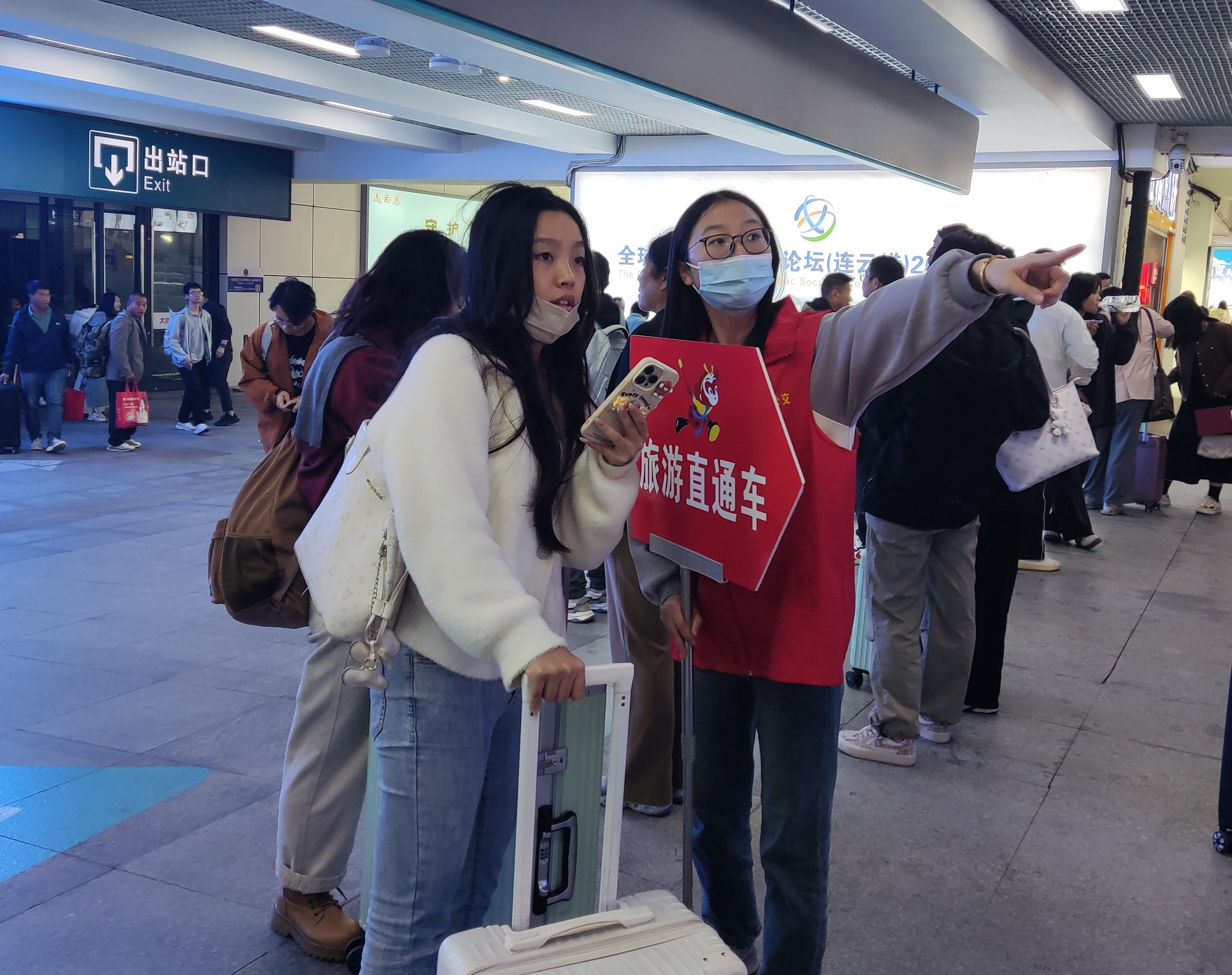 “請大家有序排隊(duì)上車,注意安全,不要擁擠!”“請給有需要的乘客讓個(gè)座,謝謝!”每逢重要節(jié)假日,在連云港火車站、各大景區(qū)客流集中等主要站點(diǎn),總能看到公交“志愿紅”活躍的身影。他們攙扶老人乘車、幫助乘客提拿行李……一個(gè)個(gè)不起眼的小細(xì)節(jié),盡顯公交文明。