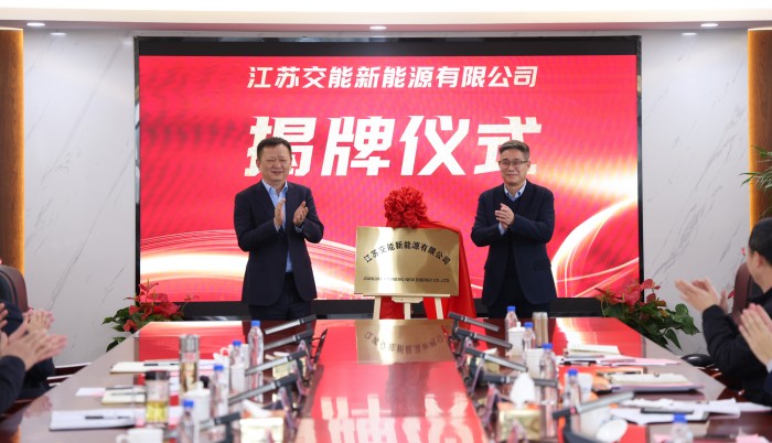會(huì)上,黃亞雄與仲偉濤共同為江蘇交能新能源有限公司揭牌。