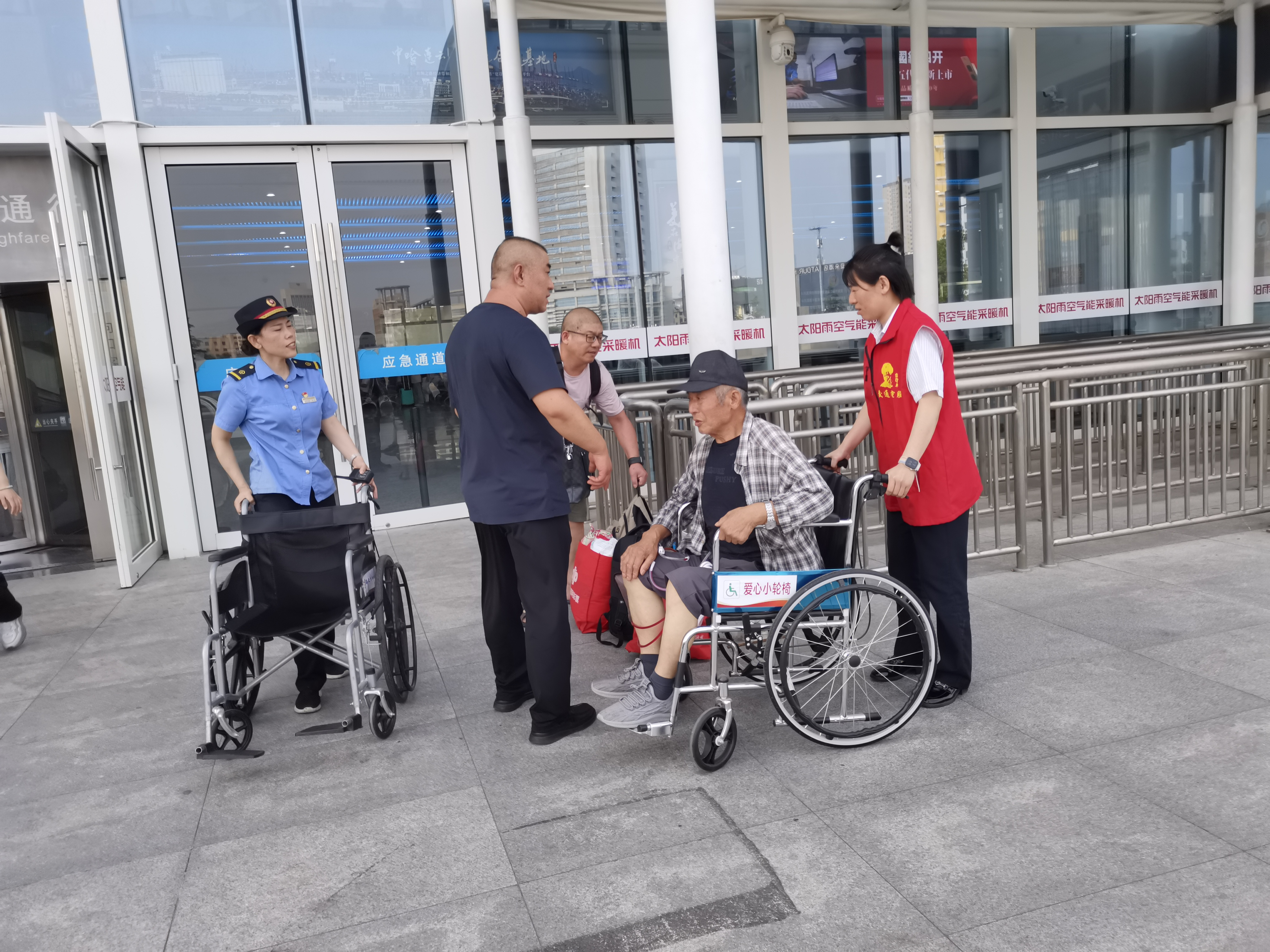 近日,連云港高鐵站“海之緣”志愿者服務(wù)站接到南京至連云港G3127班列上魏大爺?shù)那笾?,他因患病在南京住院治療,身體狀況轉(zhuǎn)好后乘高鐵返程連云港,因身體尚未痊愈行動(dòng)不便,急需輪椅輔助出行。高鐵站“海之緣”志愿者服務(wù)站接到求助信息,立即開通愛心接力通道,一邊聯(lián)系“雷鋒車”驛站志愿者在站外等候,一邊迅速推著輪椅前往站臺(tái)接站。志愿者接到魏大爺后立即安撫老人,與家屬溝通了解詳情,用輪椅將老人護(hù)送至站外,交給等候多時(shí)的“雷鋒車”驛站志愿者。接過(guò)愛心接力棒,志愿者將老人護(hù)送至家屬的接送車上,為老人鋪就一條溫暖出行路。