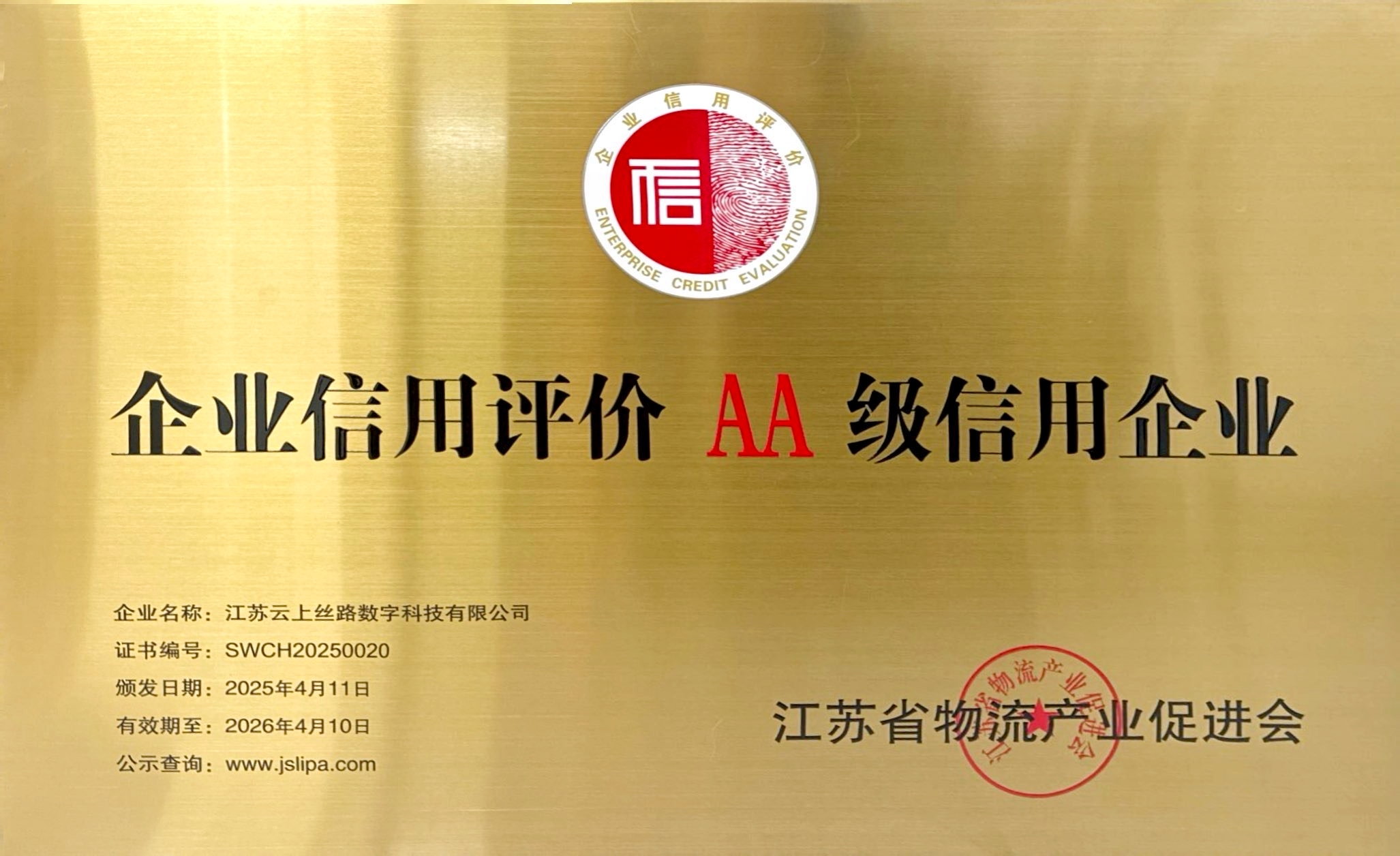 信用筑基,打造智慧物流標桿。企業(yè)信用評級是衡量物流企業(yè)綜合實力的重要指標,涉及企業(yè)管理、服務質量、社會責任、履約能力等多個維度。信用是企業(yè)的生命線。云上絲路公司自2023年8月成立以來,始終將誠信經(jīng)營視為企業(yè)發(fā)展的基石。從供應鏈管理到客戶服務,從技術創(chuàng)新到社會責任,云上絲路始終以高標準、嚴要求踐行誠信理念,贏得了客戶、合作伙伴及行業(yè)的廣泛贊譽。云上絲路將以更高標準構建透明、可信的智慧物流生態(tài),助力行業(yè)高質量發(fā)展。