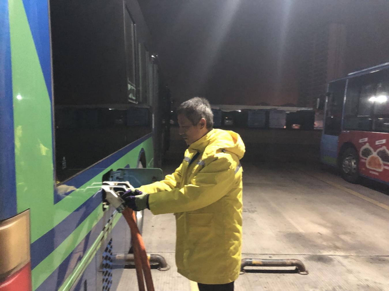 作為一個核心場站,西城充電站日均接待充電車輛近150余輛,充電量達10000度以上。深夜,董梁疏導公交車安全停放后,熟練地用右手食指按住卡簧拔出充電槍,轉(zhuǎn)身插入車輛的充電接口,只聽“咔噠”一聲,充電樁液晶屏顯示一切正常,董梁再刷卡、登記,車輛正式開始充電,整套動作可謂一氣呵成。凌晨3時,早班班次車輛都完成充電,他剛走進休息室,倒了杯溫水一飲而盡后,未作停留又開始巡檢充電樁,對充電站的消防設施、電氣線路等設備進行檢查。