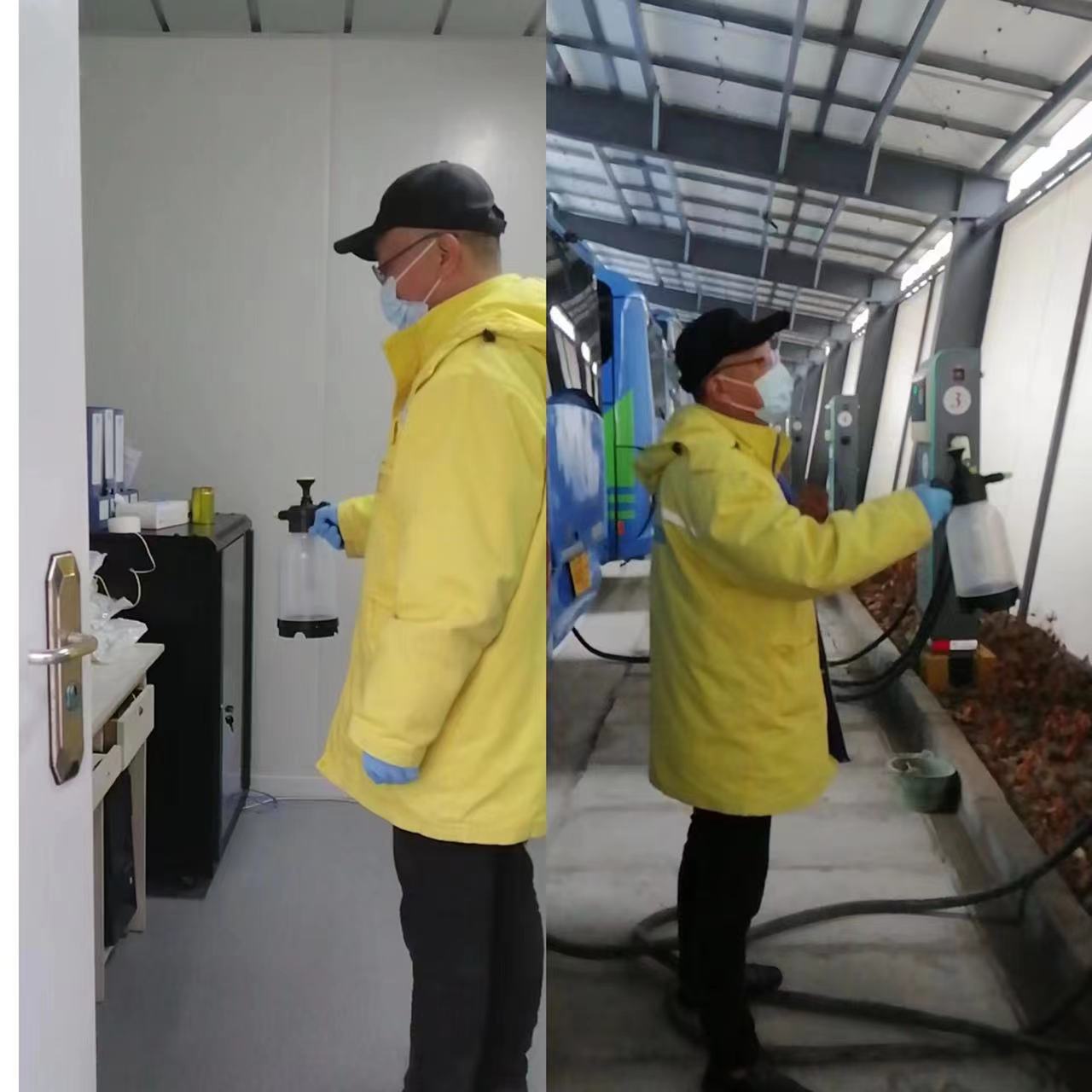 他每天認真的對場站進行消毒,認真檢查來往車輛駕駛員的行程碼、健康碼,測量體溫,做詳細的進出登記,配合當(dāng)?shù)胤酪呷藛T有效的開展工作,一人駐守站內(nèi)十余天。