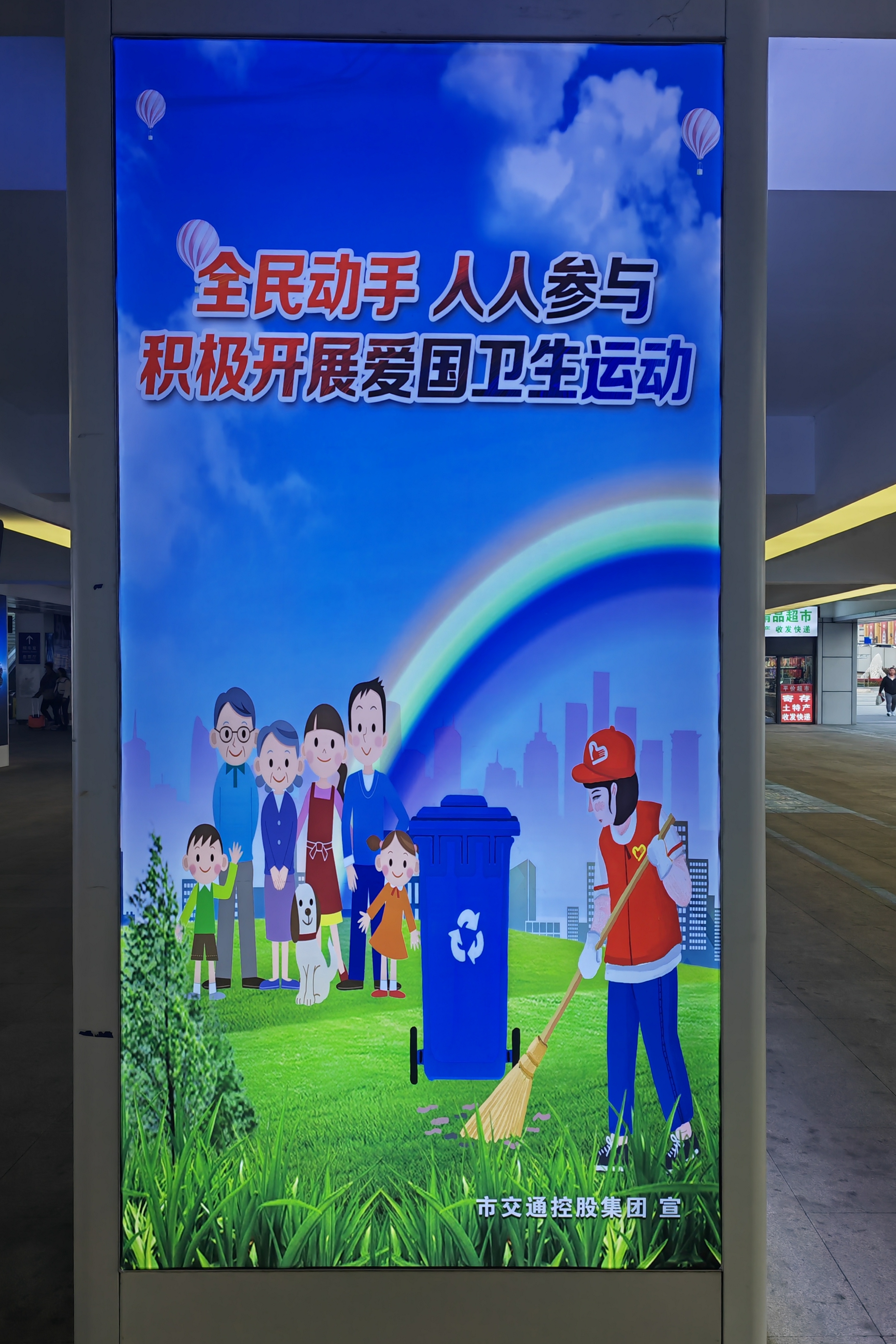 一是無死角整治重點(diǎn)區(qū)域環(huán)境衛(wèi)生。落細(xì)落小落實(shí)交通場站、重要道路、經(jīng)營場所等重點(diǎn)區(qū)域整治工作。綜合客運(yùn)樞紐72人強(qiáng)力保障環(huán)境安全衛(wèi)生,洗地機(jī)每日清洗600㎡地面,更換15套標(biāo)識指示牌、150塊破損地磚;港城大道增植喬木289棵、灌木1200㎡,2輛清掃車循環(huán)工作,60名保潔人員全天保障綠化、道路環(huán)境整潔美觀;全市近500個常規(guī)公交站亭倍增人力定崗保潔,同步開展硬件修護(hù)工作,更換LED條屏近70個,集團(tuán)每4小時全線巡查一次;海鷗廣場、繁榮路、創(chuàng)意716產(chǎn)業(yè)園,在要求經(jīng)營商戶自行整改的基礎(chǔ)上,加大巡控糾治力度,凈化經(jīng)營場所內(nèi)外環(huán)境。二是拉網(wǎng)式提升工程項(xiàng)目現(xiàn)場環(huán)境。強(qiáng)化加油站、停車場、土地資源開發(fā)等項(xiàng)目現(xiàn)場衛(wèi)生環(huán)境和安全環(huán)境保障措施,提升待開工場地現(xiàn)場環(huán)境標(biāo)準(zhǔn),確保圍擋圍墻嚴(yán)密牢固,場地內(nèi)部干凈整潔。三是高質(zhì)效開展公益宣傳氛圍營造。營造濃厚宣傳氛圍,引導(dǎo)市民凝聚力量。利用近500個常規(guī)公交候車亭、9個戶外LED大屏、15個戶外廣告牌、綜合客運(yùn)樞紐電子大屏、廣告燈箱等海量媒體資源,做好“創(chuàng)衛(wèi)”公益宣傳氛圍營造工作,公交站亭在刊公益畫面覆蓋率超50%,綜合客運(yùn)樞紐電子大屏公益畫面刊播頻率達(dá)15000次/日。