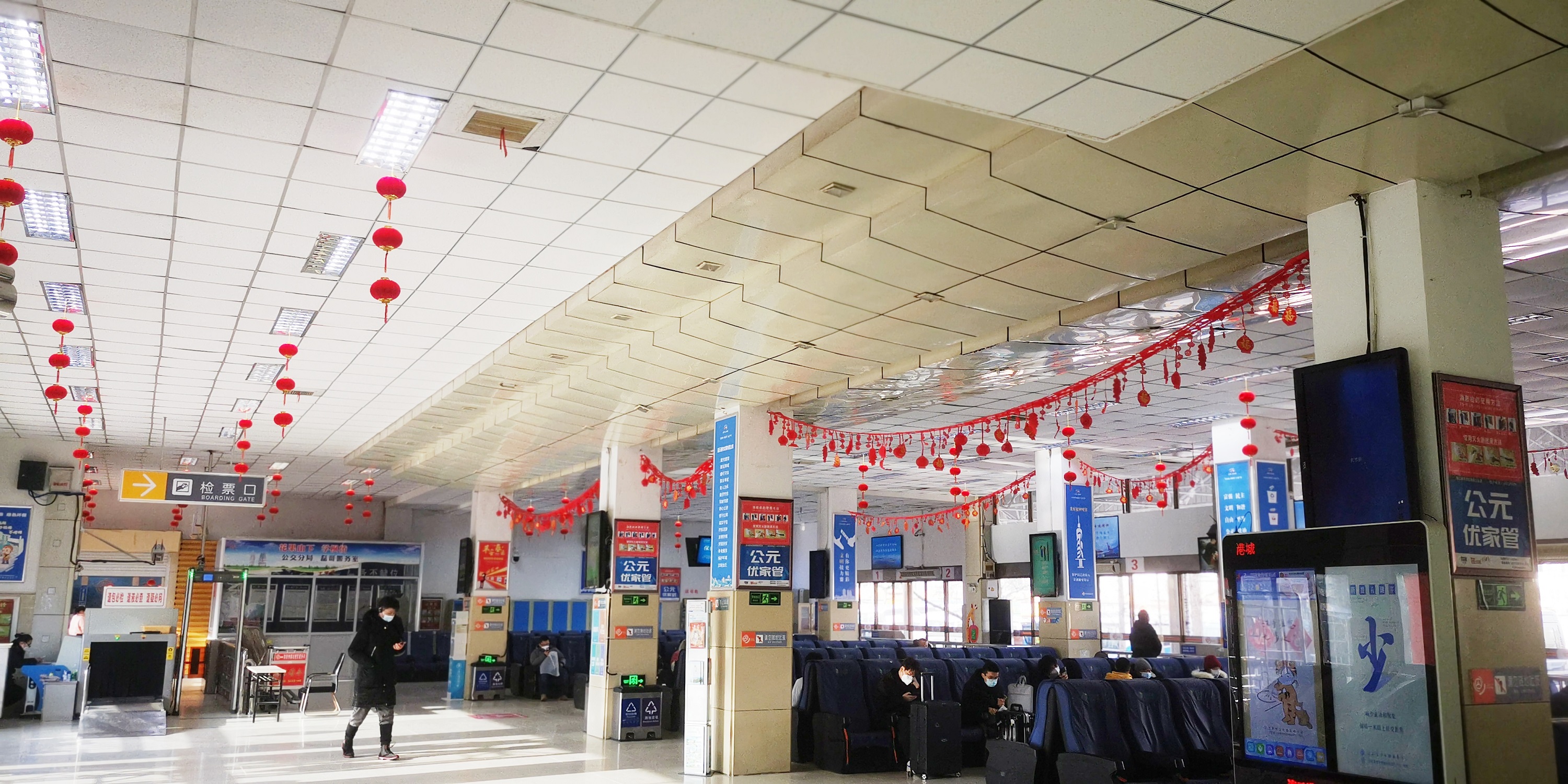 一盞盞火紅燈籠高高懸掛,隨處可見關(guān)于新歲的紅色,是年味在向新春招手。進(jìn)站大廳內(nèi)的新春交通海報(bào),站場(chǎng)通道玻璃上的祥云貼花,出站口的春節(jié)祝福語,雷鋒車驛站的新春布置等各式各樣的迎春裝飾,打造了充滿年味的幸??臻g。
