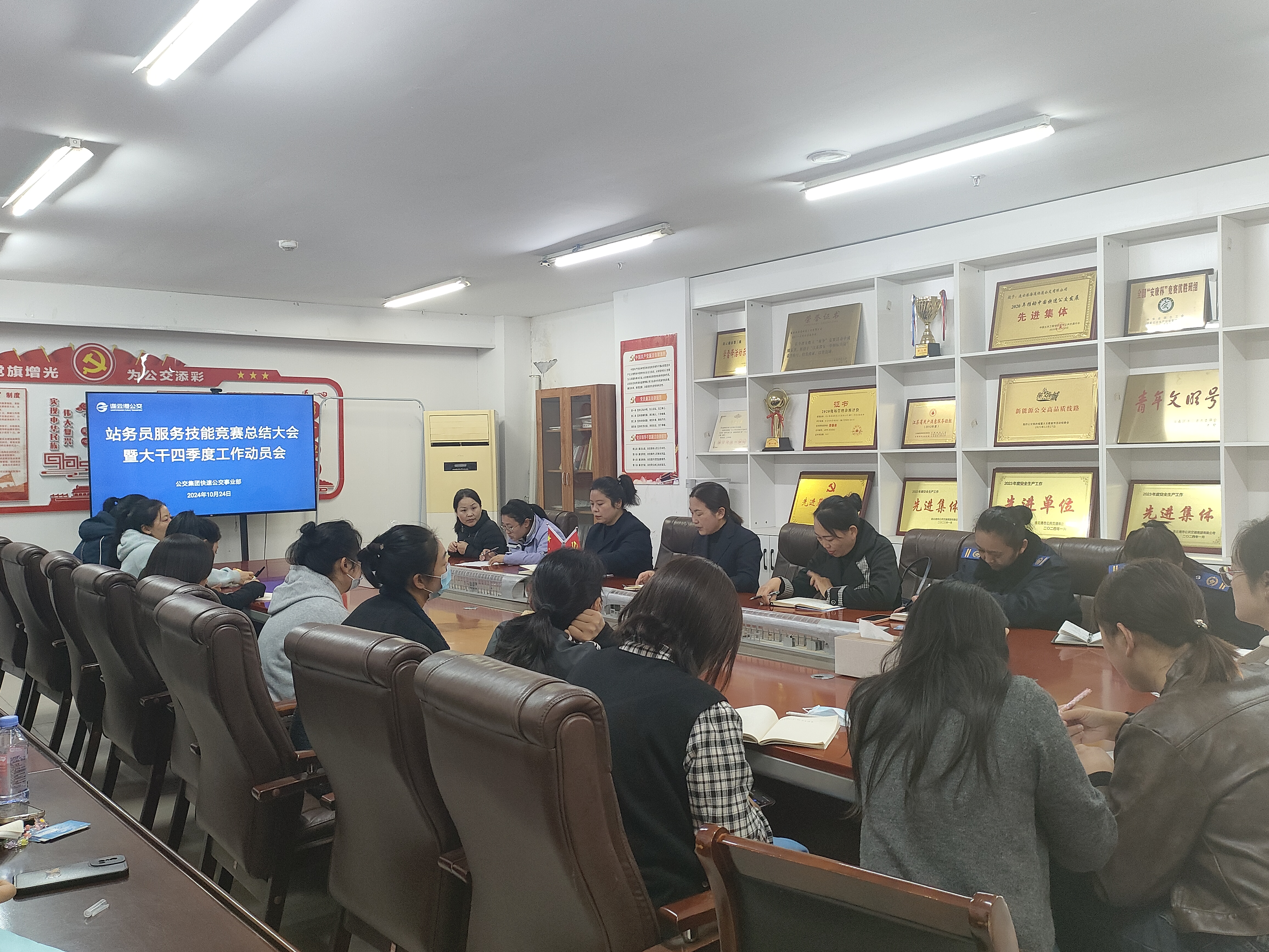 為全面總結站務員服務技能競賽成果,有效提升站務員業(yè)務能力水平,10月24日,公交集團快速公交事業(yè)部組織召開站務員服務技能競賽總結大會暨大干四季度工作動員會議,會議由支部書記、副經理、工會主席王淑琳主持,站務副經理及80名站務員參加會議。