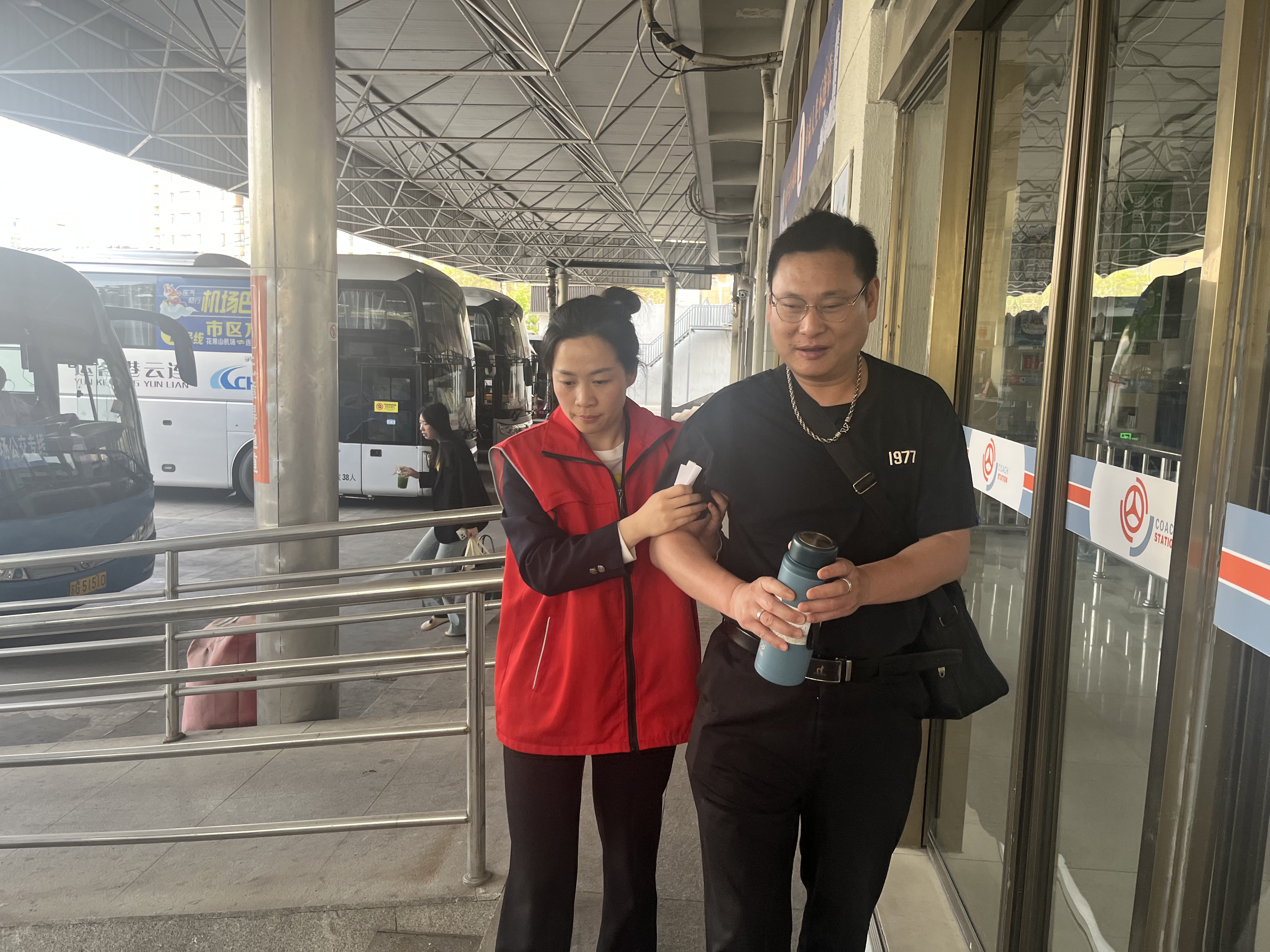 當(dāng)天,這位盲人旅客在蘇欣客運(yùn)站準(zhǔn)備乘車出行。駱青在候車室服務(wù)臺(tái)發(fā)現(xiàn)行動(dòng)不便的他,立刻主動(dòng)上前詢問(wèn)。在得知旅客的出行需求后,駱青小心攙扶著旅客,耐心細(xì)致地協(xié)助其辦理各項(xiàng)乘車手續(xù)。從購(gòu)票指引到安檢協(xié)助,每一個(gè)環(huán)節(jié)駱青都親力親為,確保不出現(xiàn)任何疏漏。