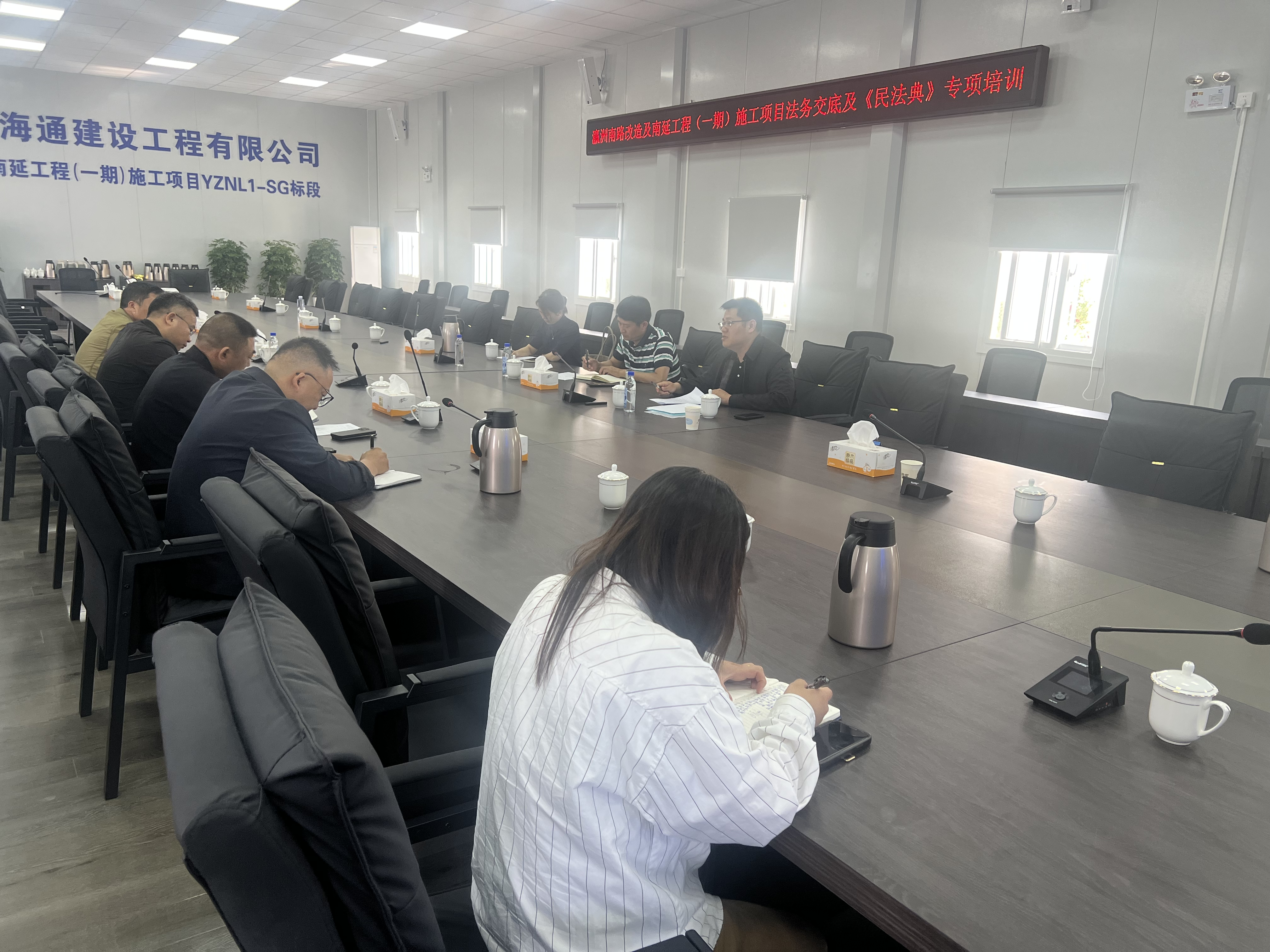 近日上午,江蘇海建公司資產(chǎn)經(jīng)營(法務)部開展瀛洲南路改造及南延工程(一期)施工項目部管理人員法務知識交底培訓及《民法典》專項培訓。