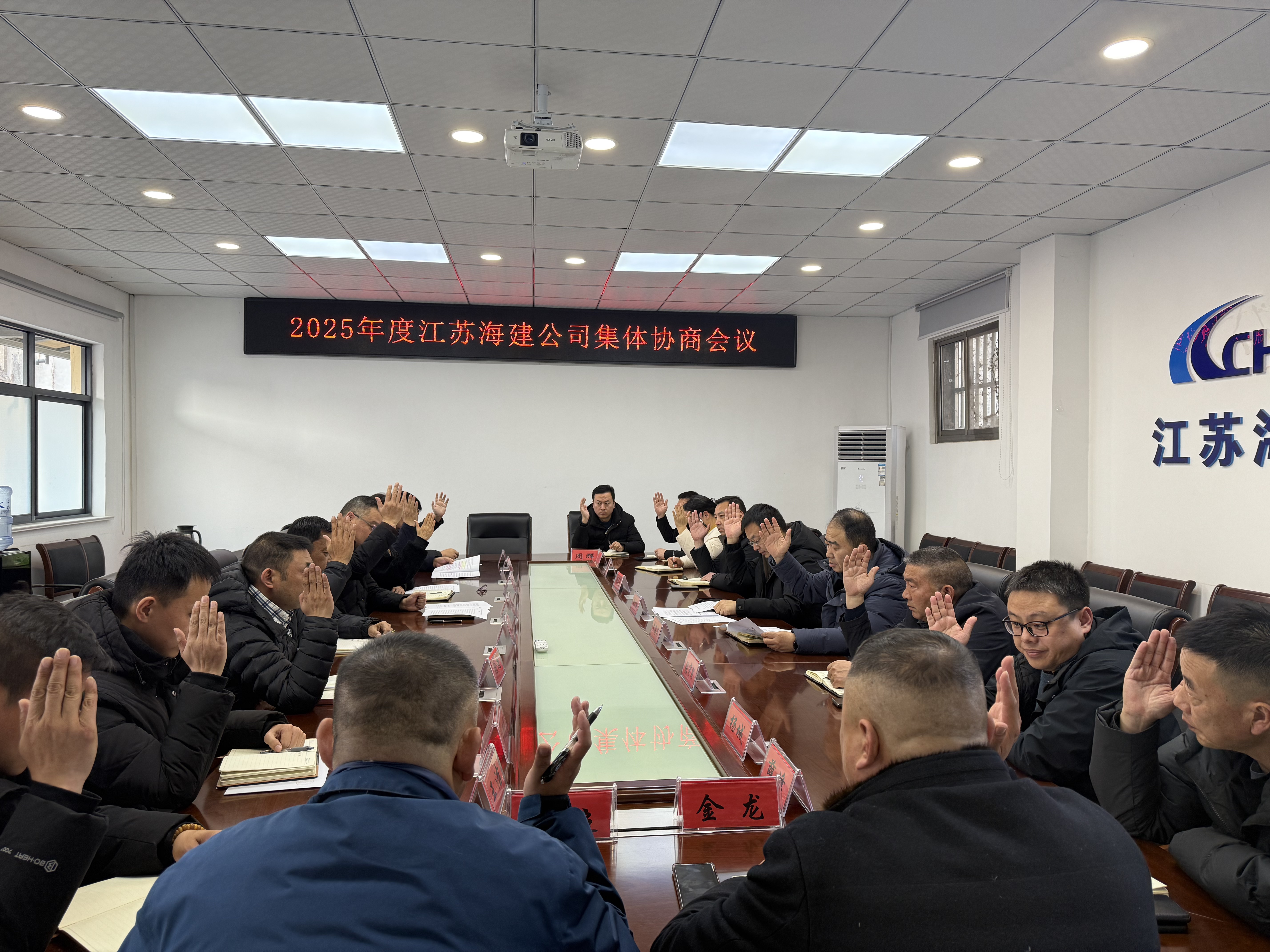 1月3日,江蘇海建公司工會組織召開2025年集體協(xié)商會議,職工、行政雙方共18名代表就一線職工(勞模、先進(jìn))療休養(yǎng)開展集體協(xié)商,公司紀(jì)委辦全程監(jiān)督協(xié)商會議。
