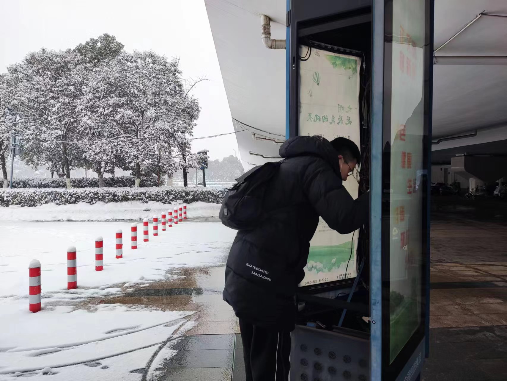 電子站牌作為市民出行的重要指引,尤其在雪天這種特殊的天氣情況下,其正常運(yùn)行對(duì)于保障市民的出行便利和安全具有重要意義。為此,市民卡公司技術(shù)部的技術(shù)人員不畏嚴(yán)寒,踏著積雪,對(duì)全市的電子站牌進(jìn)行了全面細(xì)致的檢查和維護(hù)。