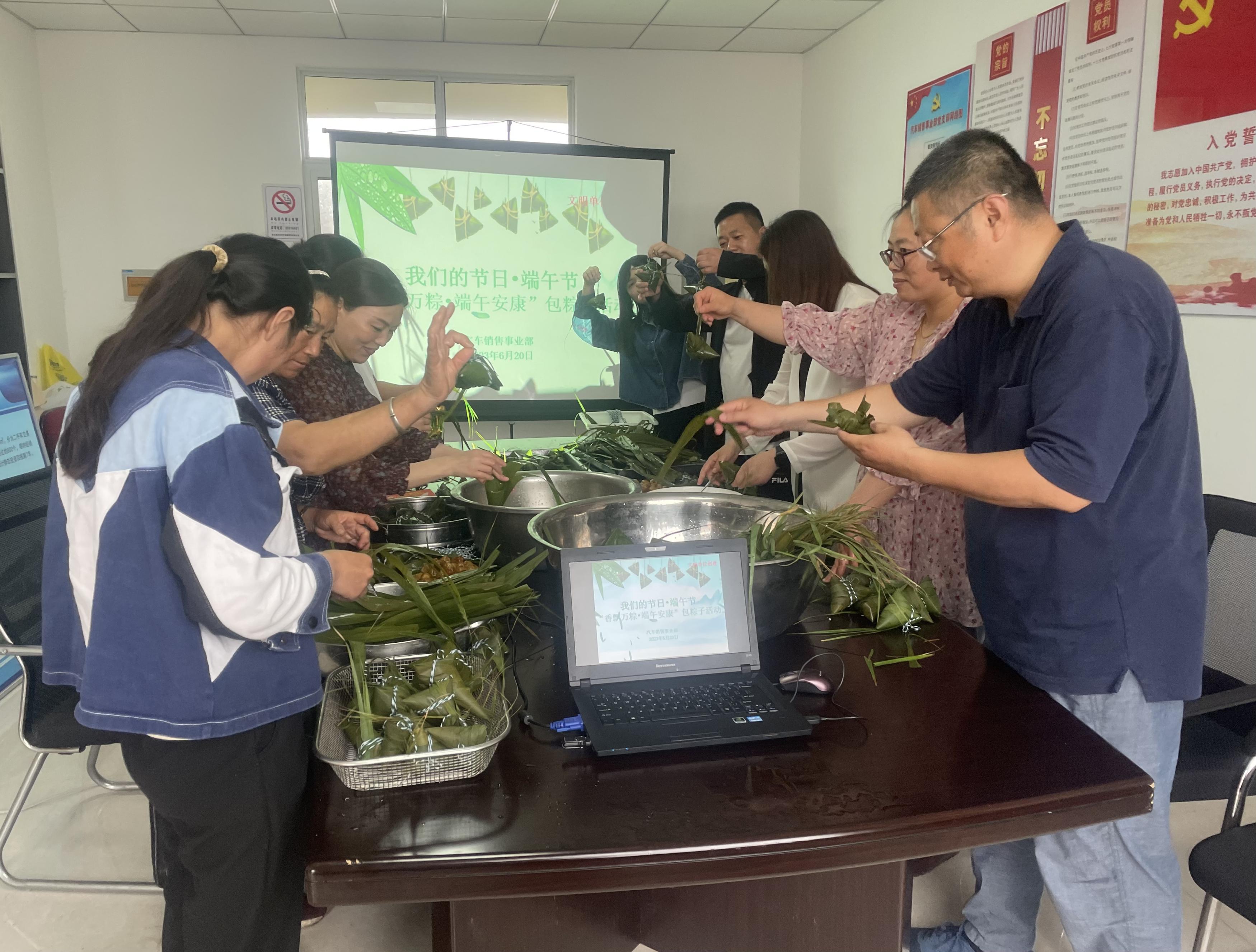 端午近,粽飄香,6月20日上午,在端午佳節(jié)來臨之際,汽車銷售事業(yè)部積極組織開展“香飄萬粽?端午安康”包粽子活動,各部門職工積極響應(yīng),共10名職工參加活動。