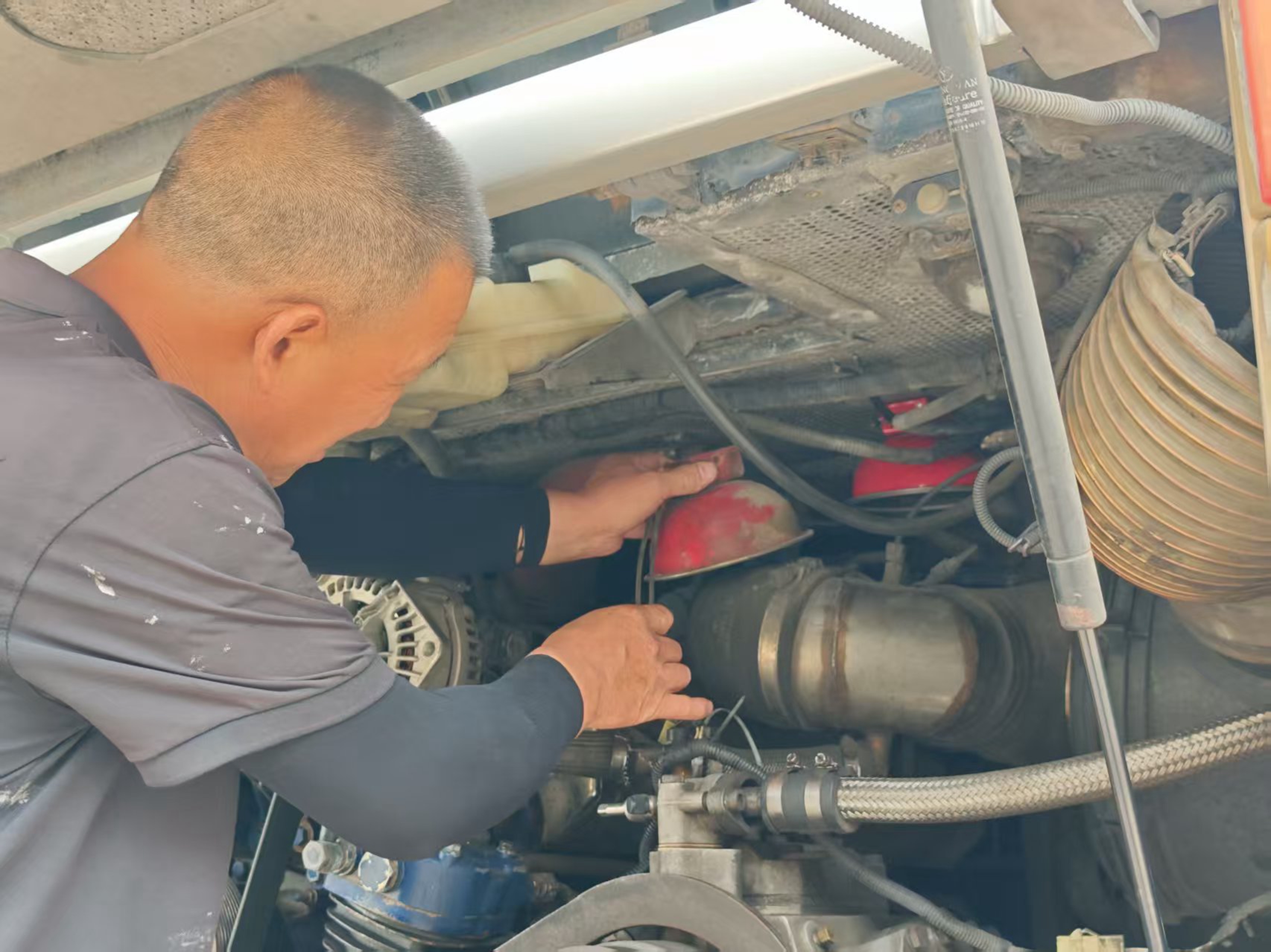 為切實(shí)消除車輛運(yùn)營安全隱患,保障夏季行車安全,7月28日至30日,連汽修理公司積極響應(yīng)汽車公司安全工作部署,結(jié)合前期夏季營運(yùn)車輛技術(shù)狀況專項(xiàng)檢查結(jié)果,針對營運(yùn)車輛開展發(fā)動機(jī)艙滅火裝置專項(xiàng)檢修工作。