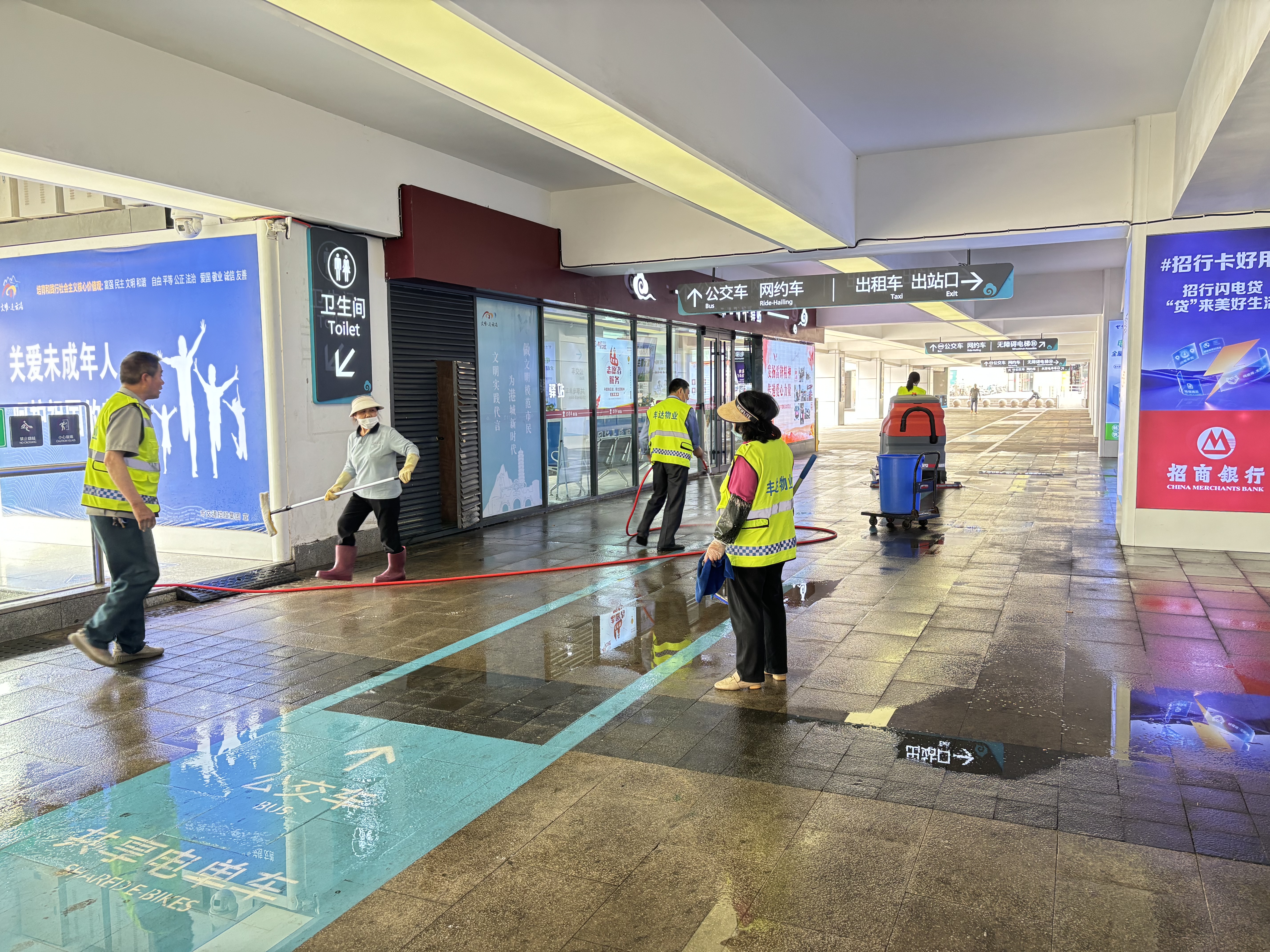 提質站區(qū)環(huán)境。針對節(jié)假日期間人流量、客流量大的特點,交通集團重點加強出站口周邊的保潔力度,同時在重點部位實施24小時動態(tài)保潔+“機械清洗,人工清掃”聯(lián)合化作業(yè)模式,加大對站區(qū)內路面污跡較多區(qū)域的清潔力度,確保節(jié)假日期間環(huán)境衛(wèi)生標準不降低。