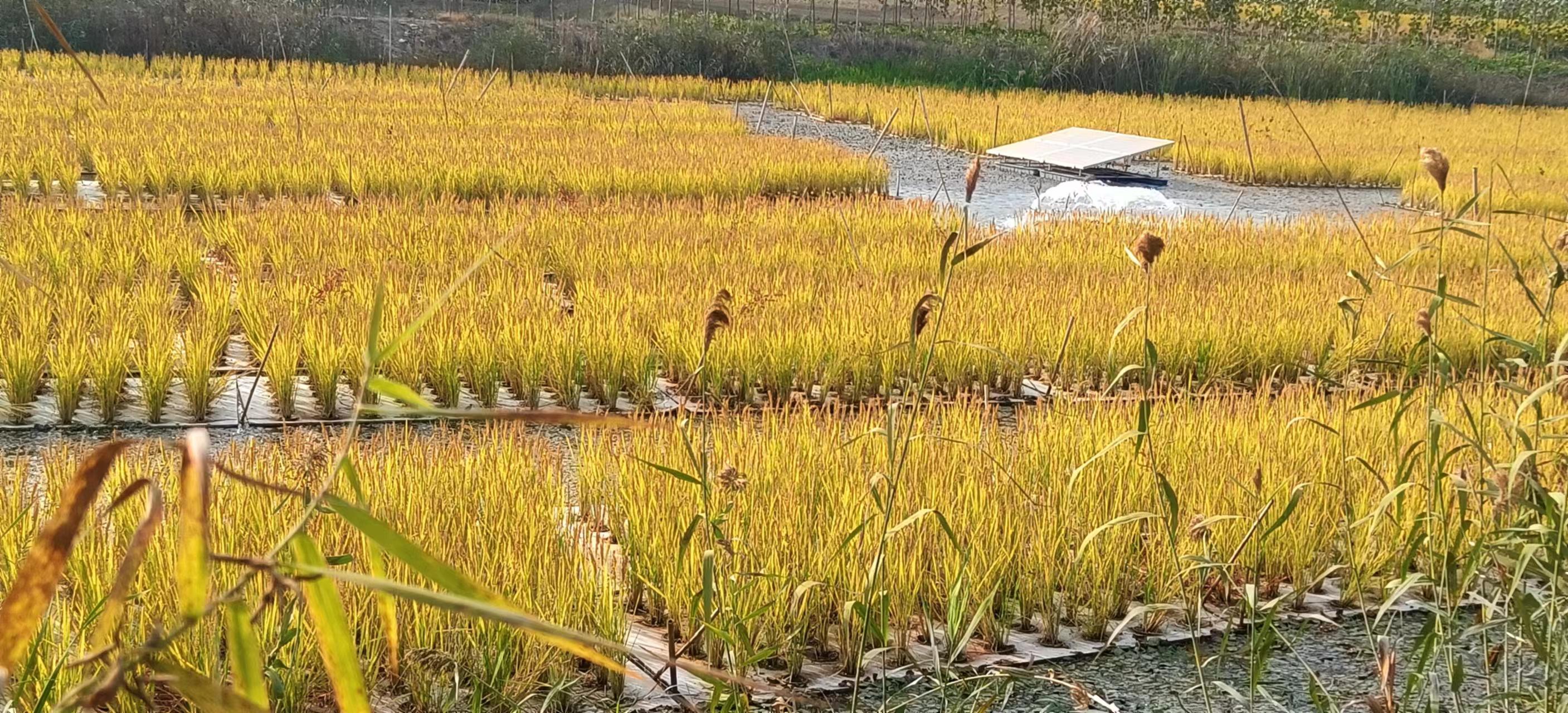 水上稻田由于遠離土壤,吸收水中營養(yǎng),所以全程無施肥,無農(nóng)藥,綠色化生態(tài)養(yǎng)殖。水稻生長的根系配合周圍出現(xiàn)的水芹菜、菱角等水生植物,多者共同改善水質,提高經(jīng)濟效益。同時村民不斷發(fā)現(xiàn)周邊水域出現(xiàn)黃鱔、魚苗、白鷺等生物也代表著水環(huán)境得到進一步的改善。