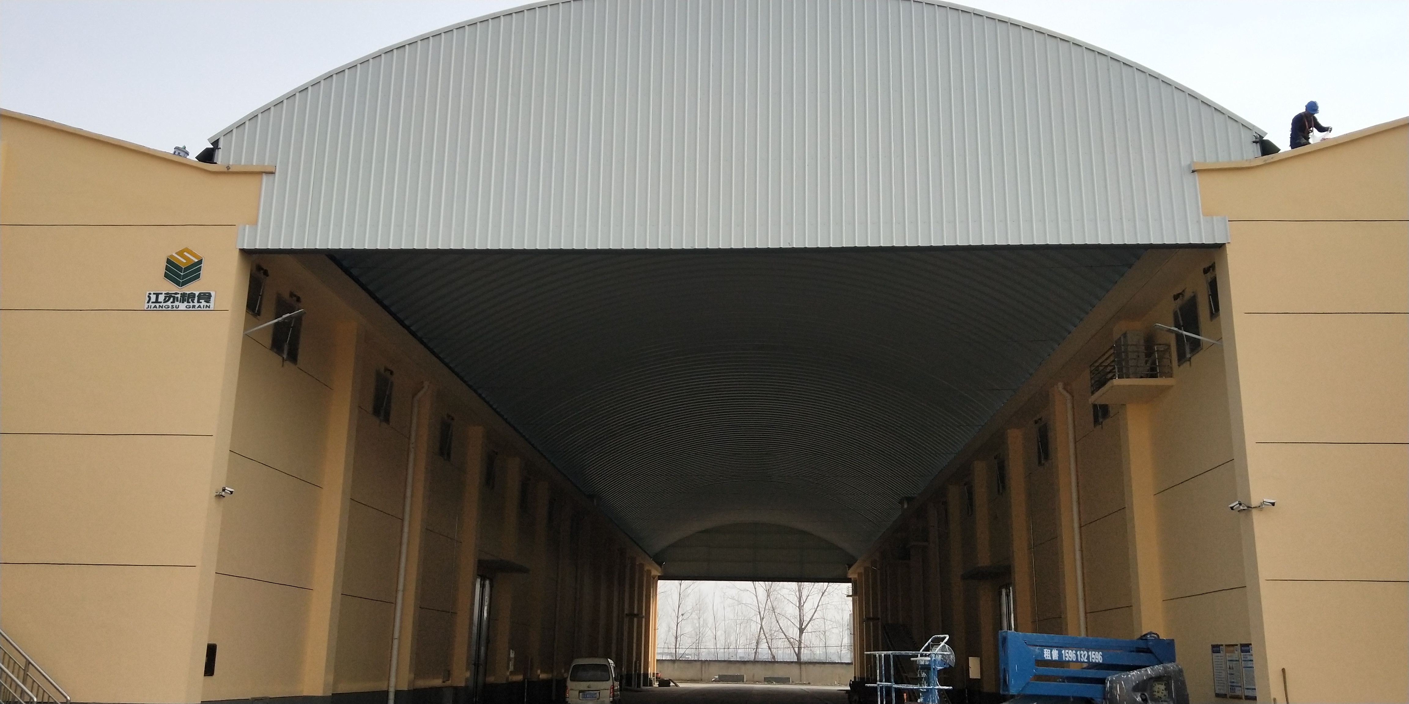 該工程總投資100萬(wàn)元,占地面積1512平方米,主體結(jié)構(gòu)采用拱殼鋼結(jié)構(gòu),于2019年12月25日開工建設(shè),工期為時(shí)30天,受疫情因素影響,倉(cāng)間罩棚工程竣工驗(yàn)收時(shí)間推遲了三個(gè)多月。按設(shè)計(jì)標(biāo)準(zhǔn),倉(cāng)間罩棚可存放糧食0.2萬(wàn)噸稻谷,將減損糧食可達(dá)0.2萬(wàn)噸/年,按每噸糧食價(jià)格400元計(jì)算,可增收約80萬(wàn)元。在非收購(gòu)期間,倉(cāng)間罩棚可以存放糧食收購(gòu)機(jī)械,保護(hù)機(jī)械防雨防曬,延長(zhǎng)機(jī)械的使用周期。