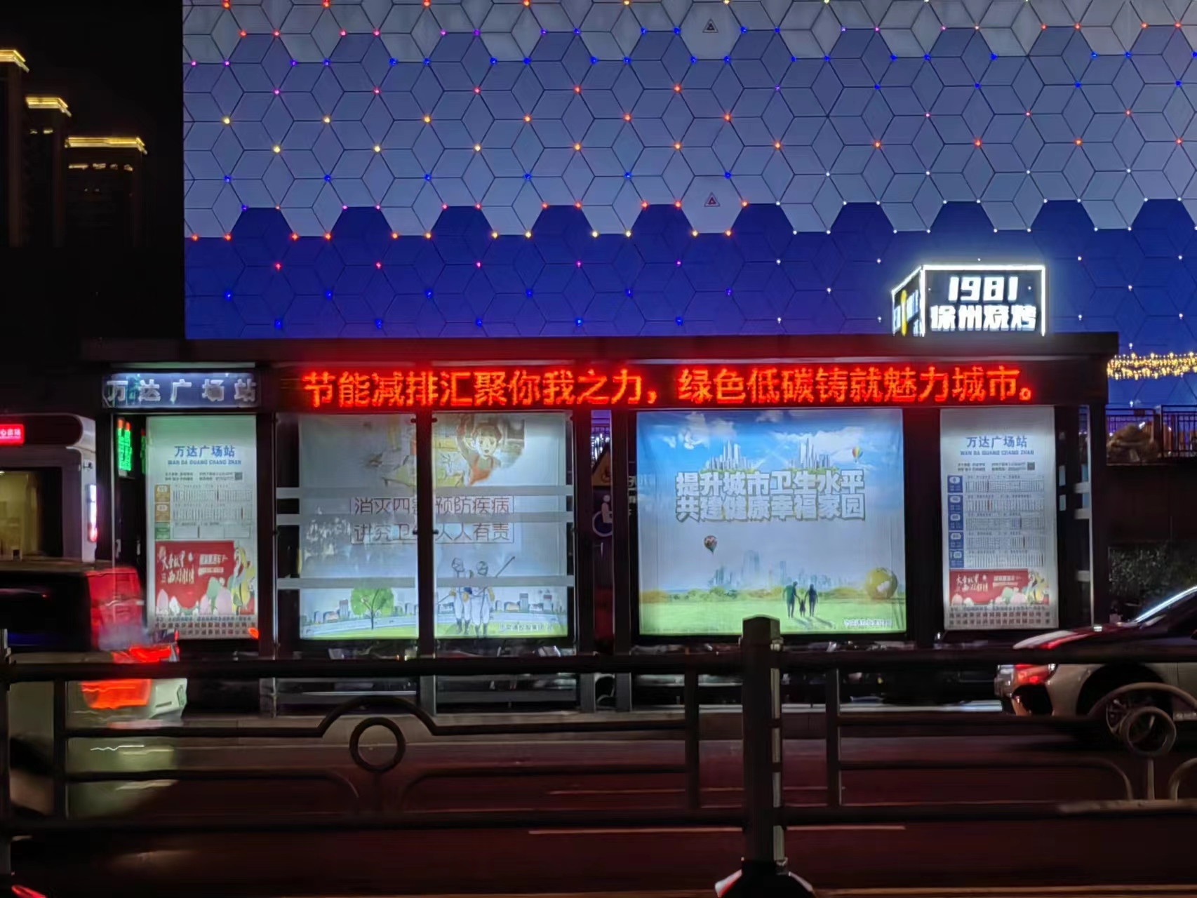 此次宣傳工作以全市400余座常規(guī)公交站亭為陣地,充分利用了曝光度極高的公交站亭作為媒介,大大提高了宣傳推廣效率,保證了一定的受眾群體基數(shù)。宣傳以口號標(biāo)語為主要載體,上刊于市區(qū)各主要道路的公交站亭LED條屏,標(biāo)語內(nèi)容為:“節(jié)能減排匯聚你我之力,綠色低碳鑄就魅力城市”。