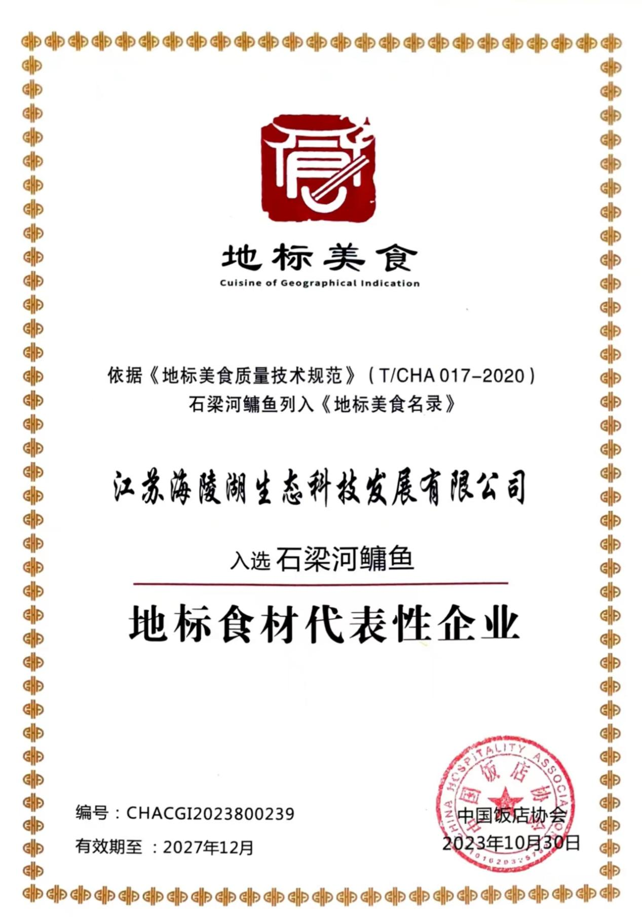 寒冬將至,又一振奮人心消息傳來(lái)。海陵湖公司獲評(píng)中國(guó)飯店協(xié)會(huì)地標(biāo)美食代表性企業(yè)。該稱號(hào)肯定了海陵湖公司在生態(tài)漁業(yè)養(yǎng)殖的突出貢獻(xiàn),成為“石梁河鳙魚”地標(biāo)美食的代表企業(yè)。