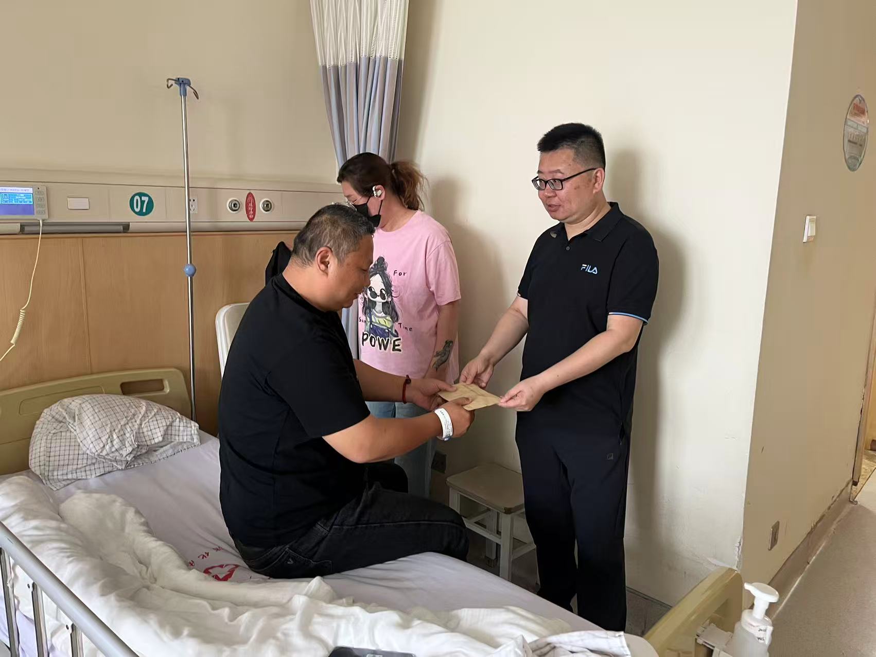 工會(huì)一行人來(lái)到朱愛華的病房,首先向他傳達(dá)了公司領(lǐng)導(dǎo)以及全體員工對(duì)他的牽掛與關(guān)愛。大家關(guān)切地詢問朱愛華目前的身體狀況以及治療的具體進(jìn)展,仔細(xì)傾聽他的需求和想法。工會(huì)代表鼓勵(lì)朱愛華要保持積極樂觀向上的心態(tài),堅(jiān)定戰(zhàn)勝病魔的信心,爭(zhēng)取早日康復(fù)。