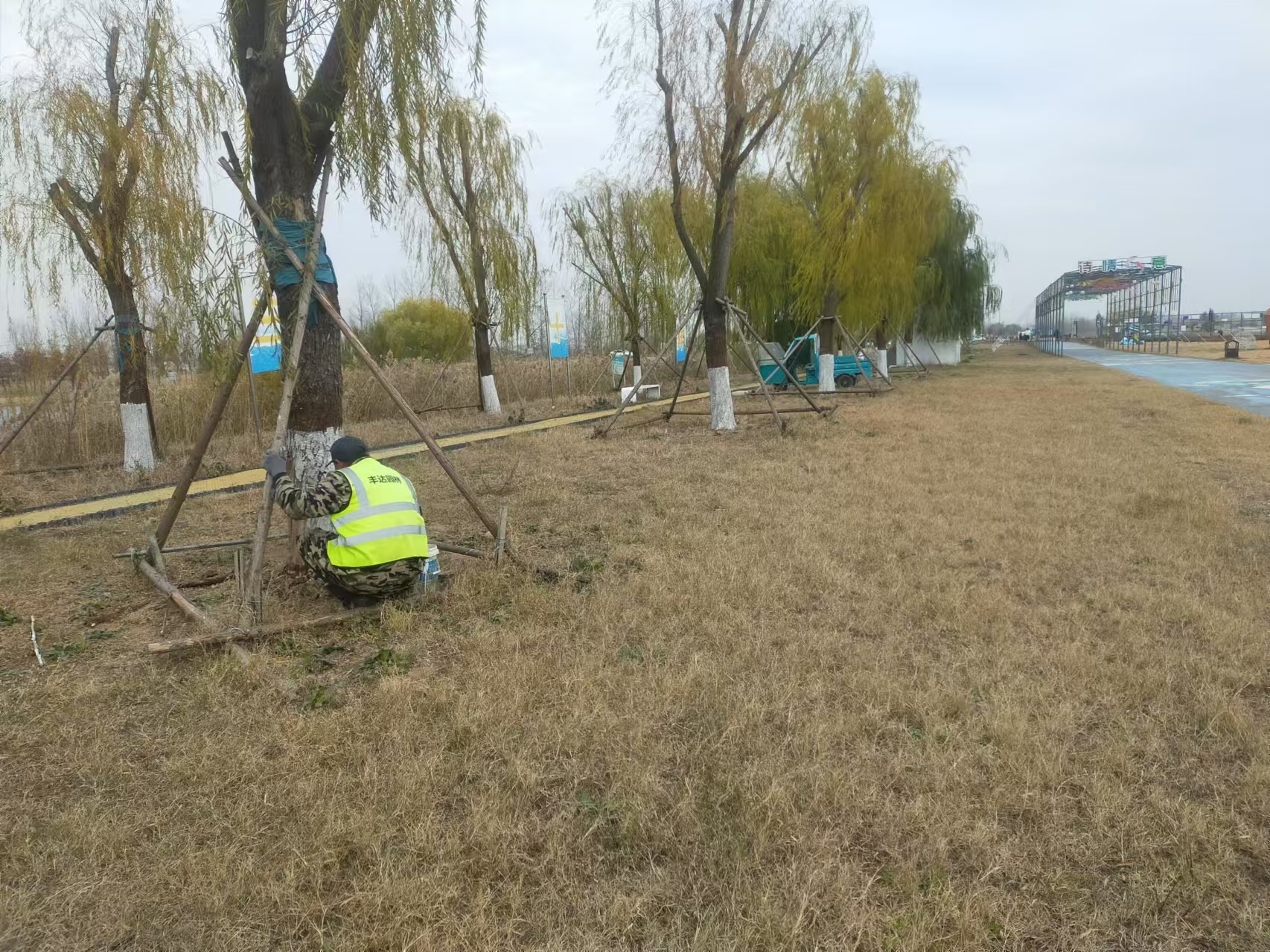 目前,各示范點(diǎn)內(nèi)苗木已統(tǒng)一穿上了潔白的“羽絨服”,營造靚麗景觀效果,確保各示范點(diǎn)綠化安全過冬。